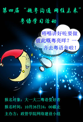 1.对象:政管学院大一大二全体学生。(会讲粤语的学生为大粤亮,不会讲粤语的学生为小粤亮)