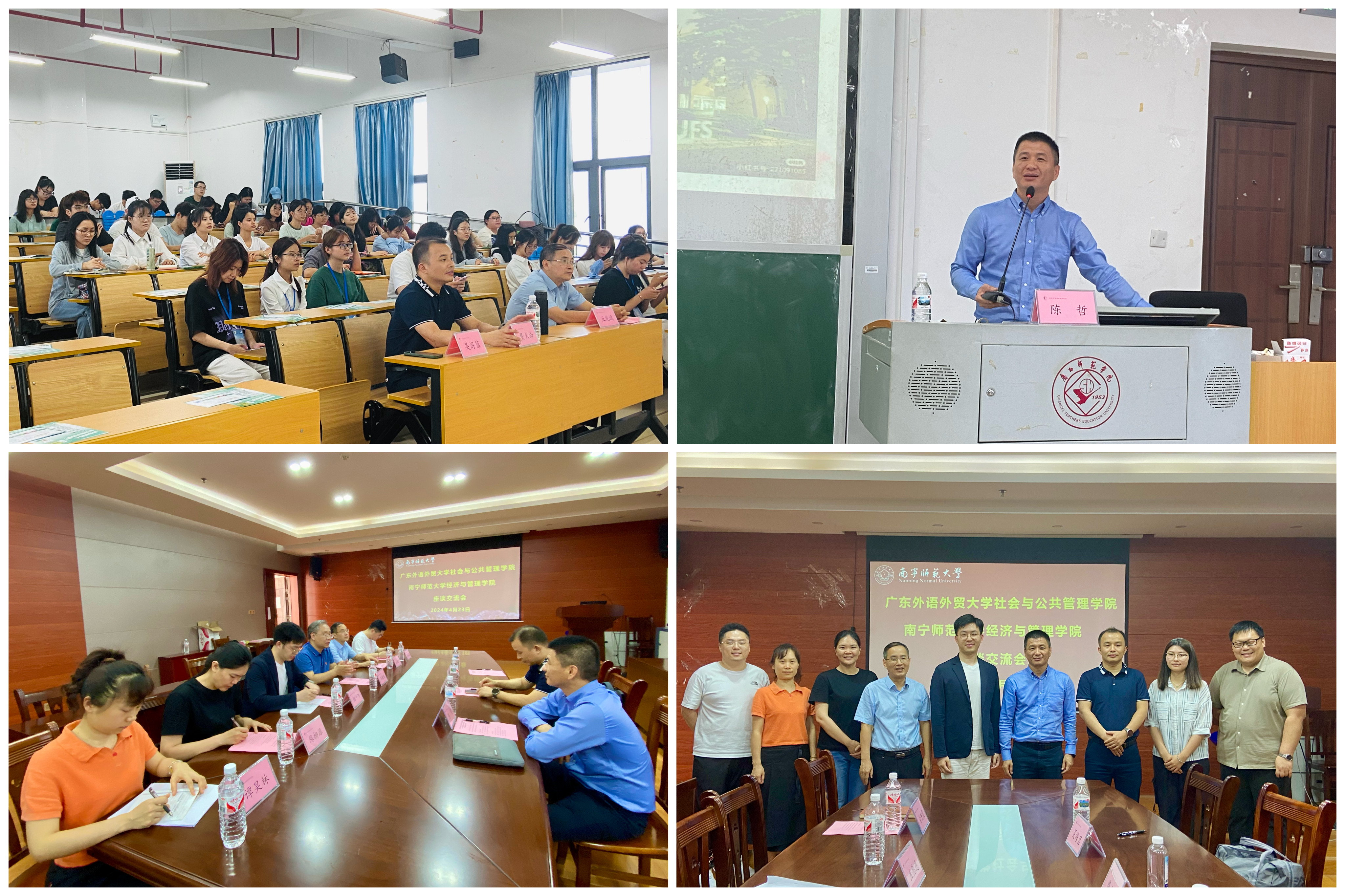 4月23日下午,英国上市公司官网365一行首先与南宁师范大学经济与管理学院开展了工作交流,该院韦海鸣院长、丘兆逸副院长、何一飞副书记、公共管理系主任陈柳源等参加座谈交流,双方围绕公共管理专业硕士点发展、学生工作、人才培养等议题介绍了各自的基本情况和经验。随后,英国上市公司官网365陈哲副书记为南宁师范大学经管学院学生进行招生宣讲,以我校研究生各类奖助学金政策和毕业生就业方向为切入点,对英国正版365官方网站各专业进行详细的介绍,并对与会师生的提问进行耐心解答。