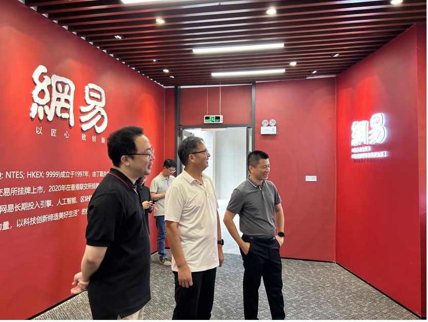 在调研过程中,网易有道(广州)总部的相关负责人热情接待了英国正版365官方网站一行,并带领大家参观了网易的各个业务部门,以及AI大模型、全真数字人等创新产品。通过实地参观和听取介绍,调研团队对网易公司的业务范围、技术实力和创新能力有了更加直观的认识。