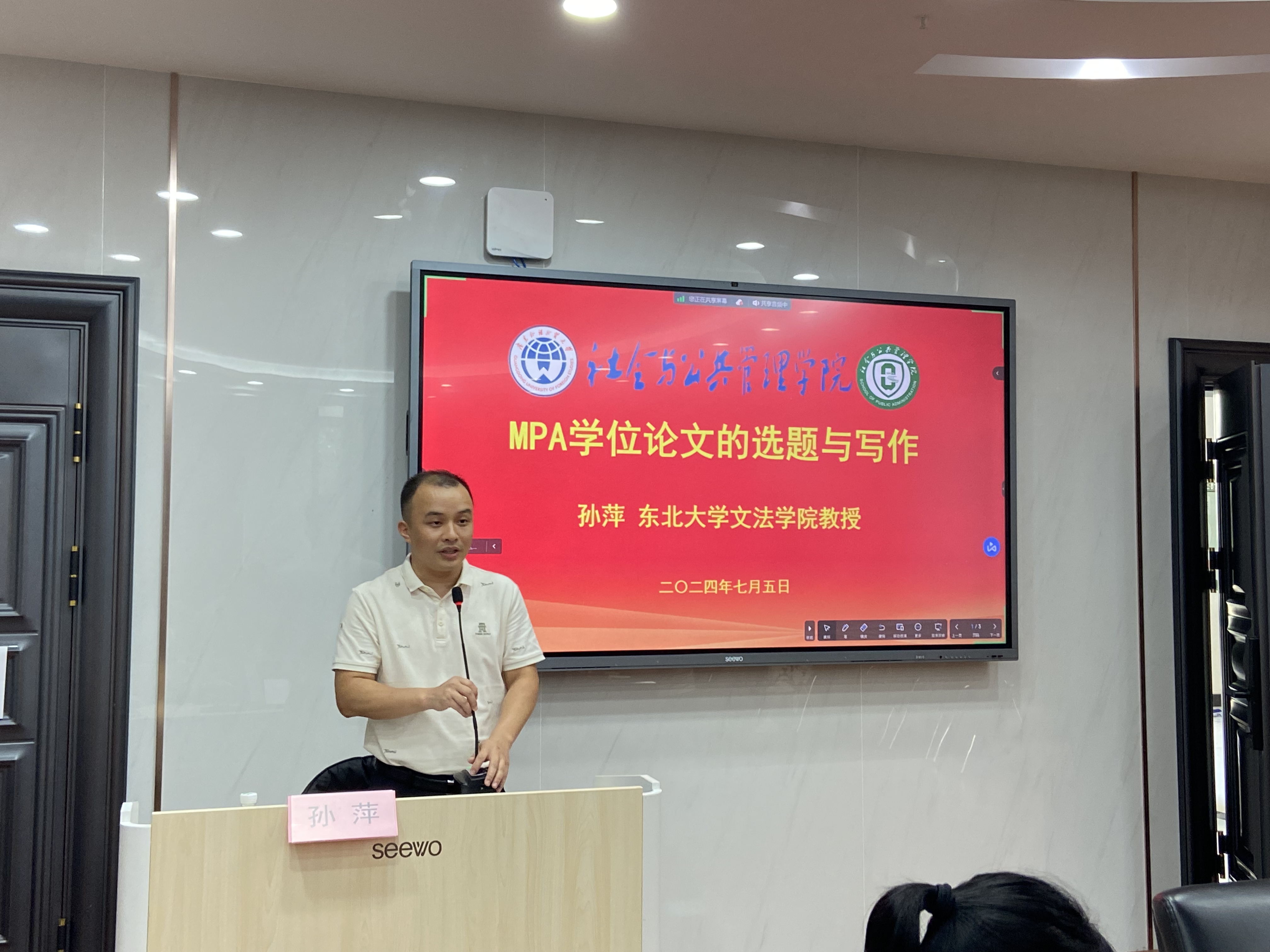 讲座由费久浩副院长主持,他对孙萍教授远道而来表示热烈欢迎,并向孙教授介绍了英国上市公司官网365三个本科专业、五个硕士点的基本情况以及在场的MPA师生。