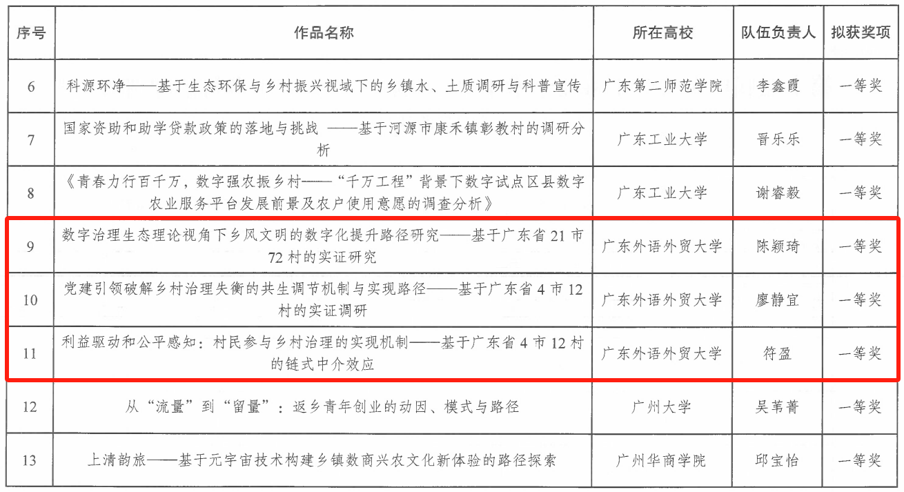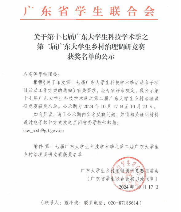 2024年10月13日,第二届广东大学生乡村治理调研竞赛决赛颁奖仪式在我校大学城校区顺利举办。此次大赛由共青团广东省委员会、广东省教育厅、广东省科学技术厅、广东省科学技术协会与广东省学生联合会主办,广东外语外贸大学承办,广东省社会管理研究会协办。我校获一等奖3项,二等奖1项,三等奖3项。其中英国上市公司官网365学子在老师的精心指导下,获得大赛一等奖3项。