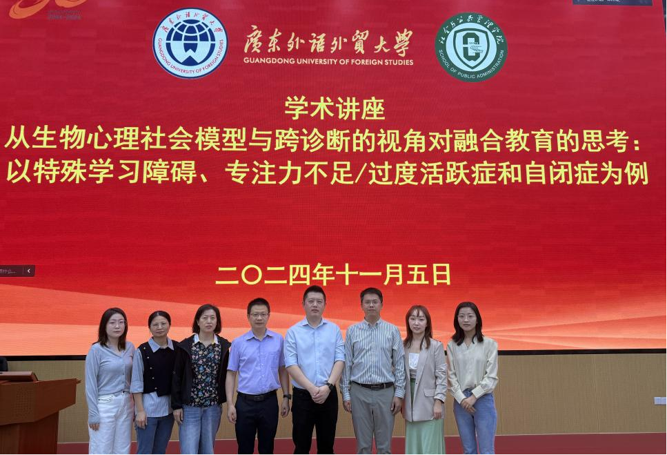 本网讯 2024年11月5日上午,院庆二十周年学术讲座在MAP中心第一会议室开讲,本次讲座邀请了香港教育大学特殊教育与辅导学系副系主任、我校云山讲座教授刘铎博士开展主题为“从生物心理社会模型与跨诊断的视角对融合教育的思考:以特殊学习障碍、专注力不足/过度活跃症和自闭症为例”的讲座。讲座由张信勇副院长主持,陈胜副院长、应用心理学系付桂芳教授、刘丽虹教授、王俊静副教授、毕爽副教授、吴晓涵博士、社会工作系陈美招副教授,应用心理学和社会工作专业本科生、应用心理和社会工作专硕参加本次讲座。