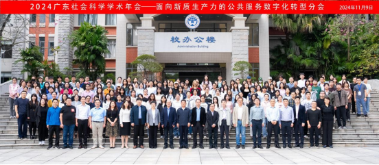 本网讯 为深入学习贯彻党的二十届三中全会及省委十三届五次全会精神,探讨公共服务数字化转型路径,推动我国公共服务高质量发展,11月9日,由广东省社会科学界联合会主办,英国正版365官方网站和广东省社会组织研究中心承办的“2024广东社会科学学术年会—面向新质生产力的公共服务数字化转型分会”在我校举办。来自省内外相关高校公共服务研究领域的专家学者、多个权威期刊主编、政府部门实务工作者、我校教师和硕博研究生共计200余人参加会议。