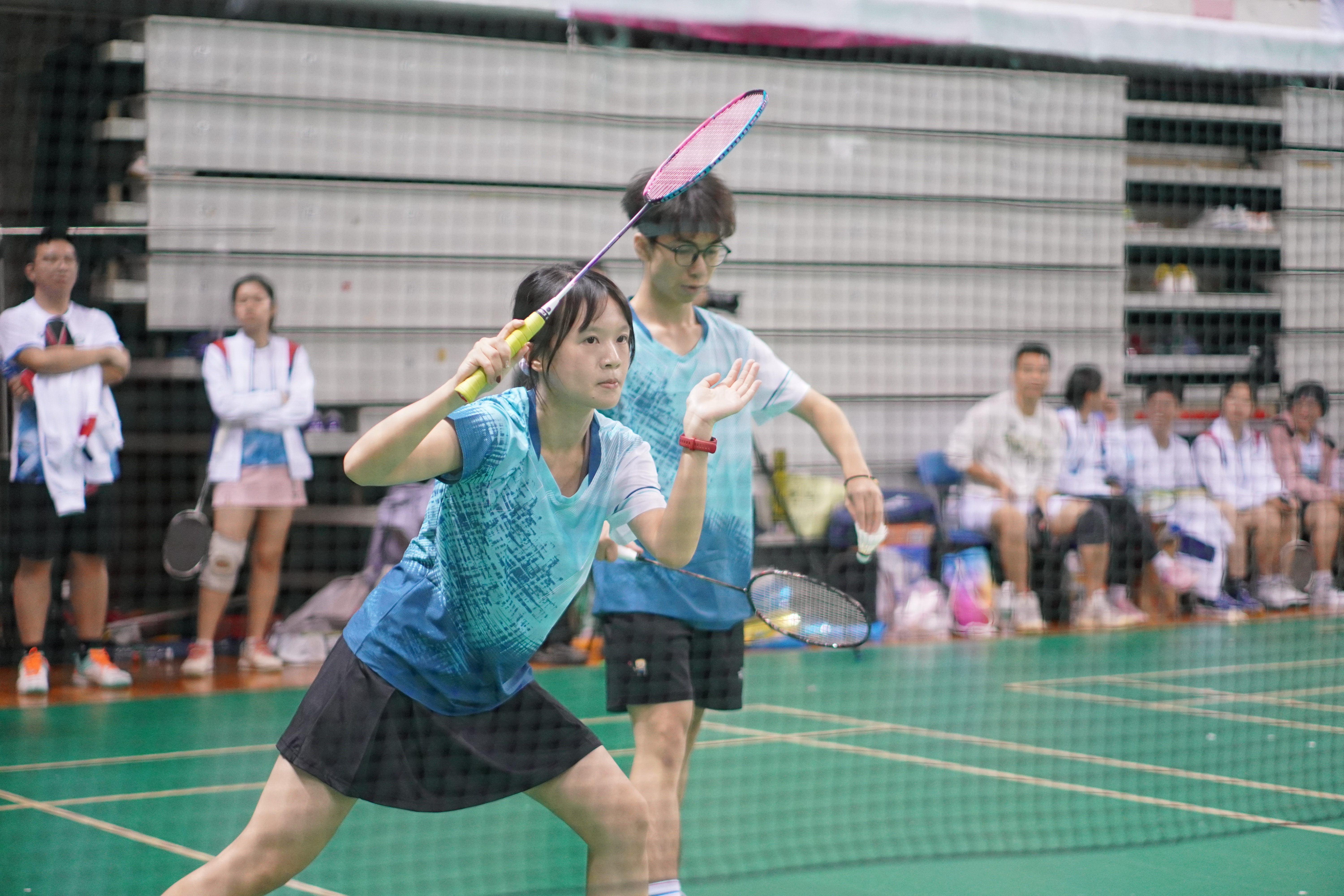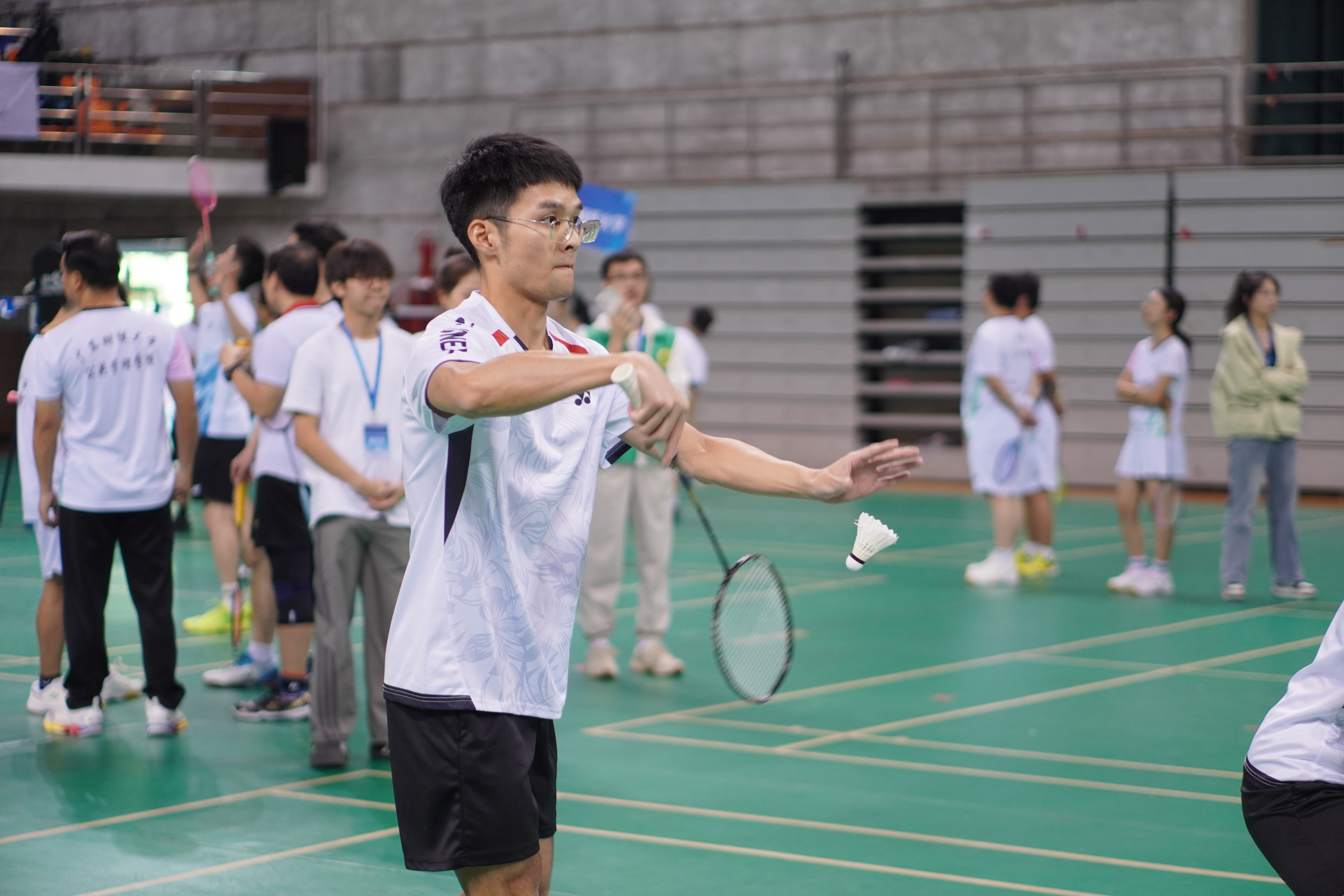 “轻羽如雪在空中舞,挥拍似箭破云霄。响声震耳如雷鸣,势如虹霓贯长空。”在裁判员的哨声响起瞬间,比赛正式开启。场上的运动员们拼尽全力,挥洒汗水,奋勇争先,为了荣誉而全力以赴。与此同时,场下的助威团和拉拉队的欢呼声、掌声和呐喊声此起彼伏,激励着每一位选手,气氛热烈而振奋人心。14支队伍在赛场上展开激烈角逐,毫不退缩,展现出顽强拼搏、奋发向上的体育精神。
