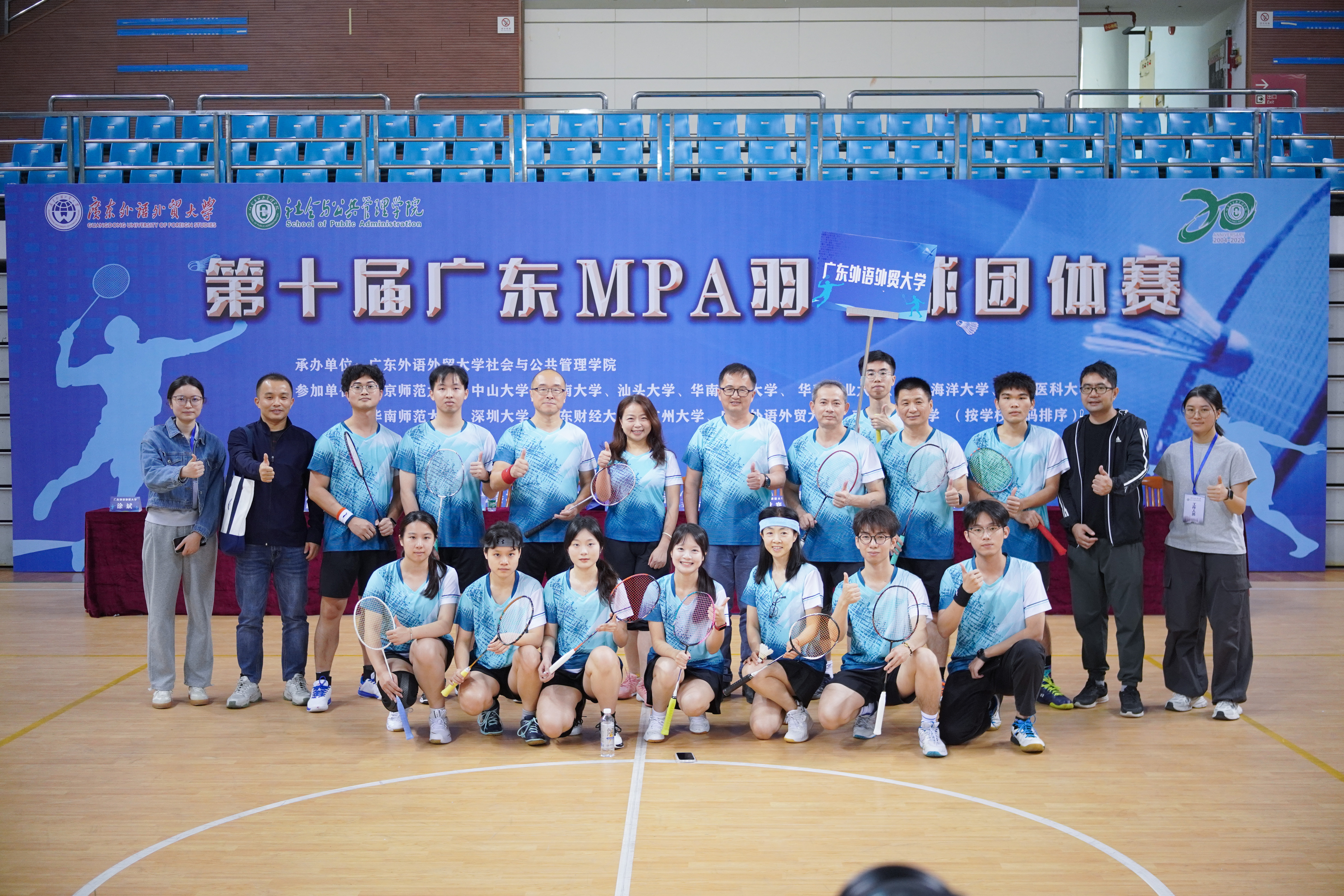 本网讯 为丰富MPA师生的课余生活,促进高校之间的交流,增强师生的身心健康,2024年12月1日,由广东高校MPA联盟主办、英国正版365官方网站承办的第十届广东MPA羽毛球团体赛在广东外语外贸大学(大学城校区)体育馆隆重举行。同时,为进一步促进各培养单位之间的互动,本次赛事还新增“院长杯”羽毛球邀请赛。
