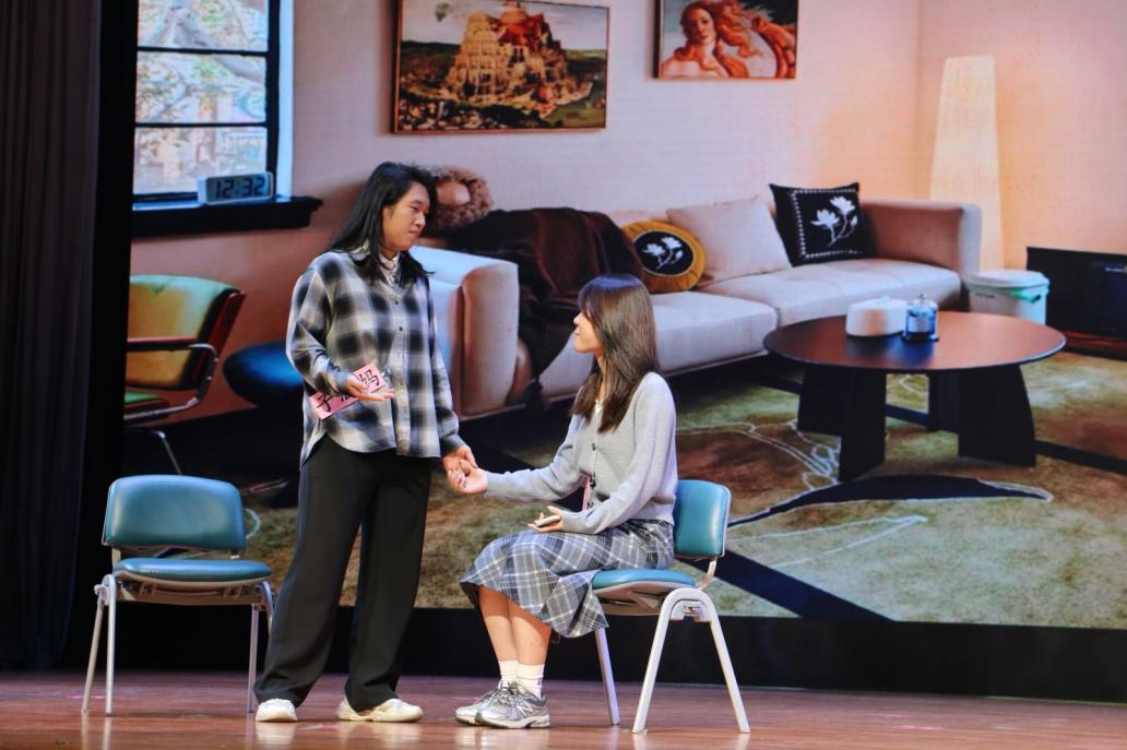 跃动鼓点击打人心,TGC街舞协会的《strange thing》动感舞蹈音浪将晚会氛围推向热潮。随即24级社会工作专硕班带来的活力诙谐的歌舞《GG bond》、金融学院艺术团歌队带来的《山谷·花季》以及应用心理学2301班带来的舞台短剧《心灵解码室》,收获了连绵不断的热烈掌声。