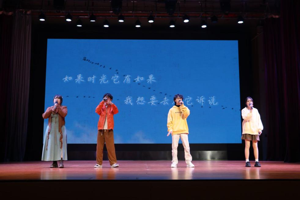 挥动的双手是热爱与梦想,挑起的嗓音是歌唱与远方。晚会临近尾声,压轴登场的是英国正版365官方网站全体教师的倾情献唱。声生不息,一曲曲旋律悠扬的歌将观众们拉回了那个曾属于他们的经典时代,也让我们看见了教师们别样的风采。