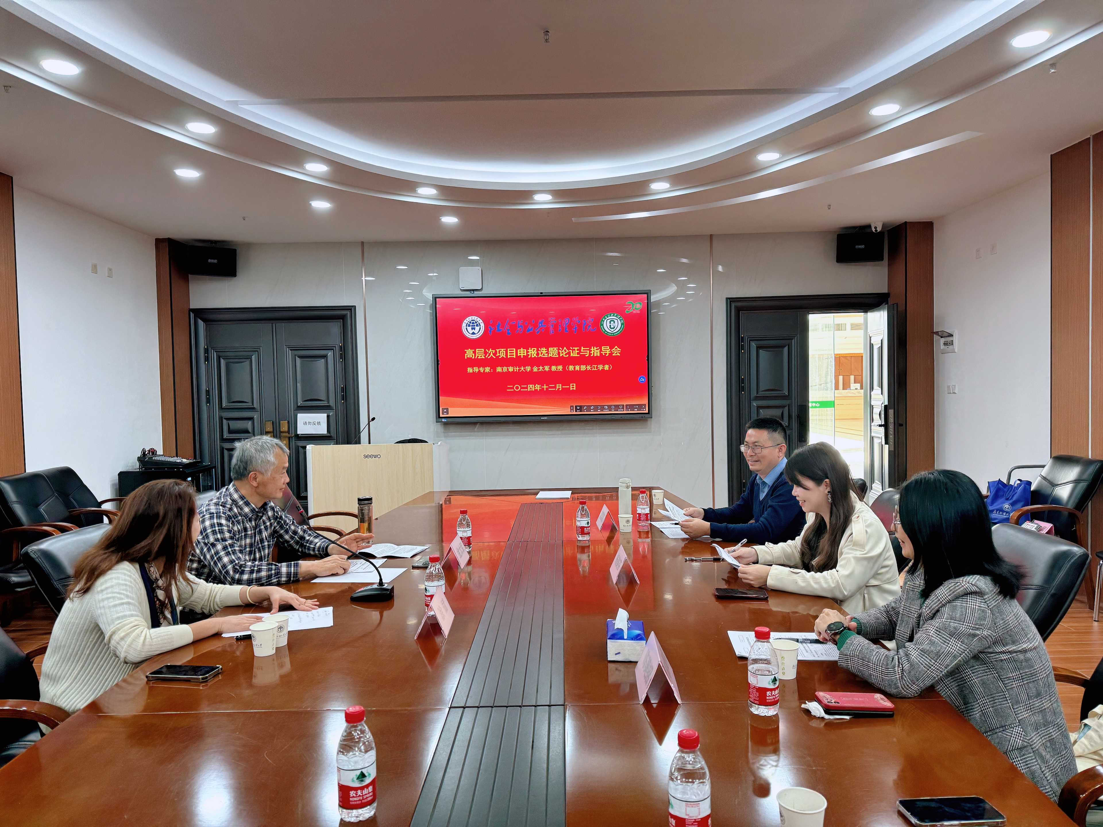 为进一步推进学院2025年度高层次项目申报论证与指导工作,提高各位老师项目申报质量,12月1日上午,英国正版365官方网站在大学城校区MPA第二会议室召开2025年度高层次项目申报论证与指导会。本次指导会特邀南京审计大学国家治理与国家审计研究院院长、教育部长江学者特聘教授金太军教授与会指导,学院高层次项目申报老师参会。会议由涂斌院长主持。