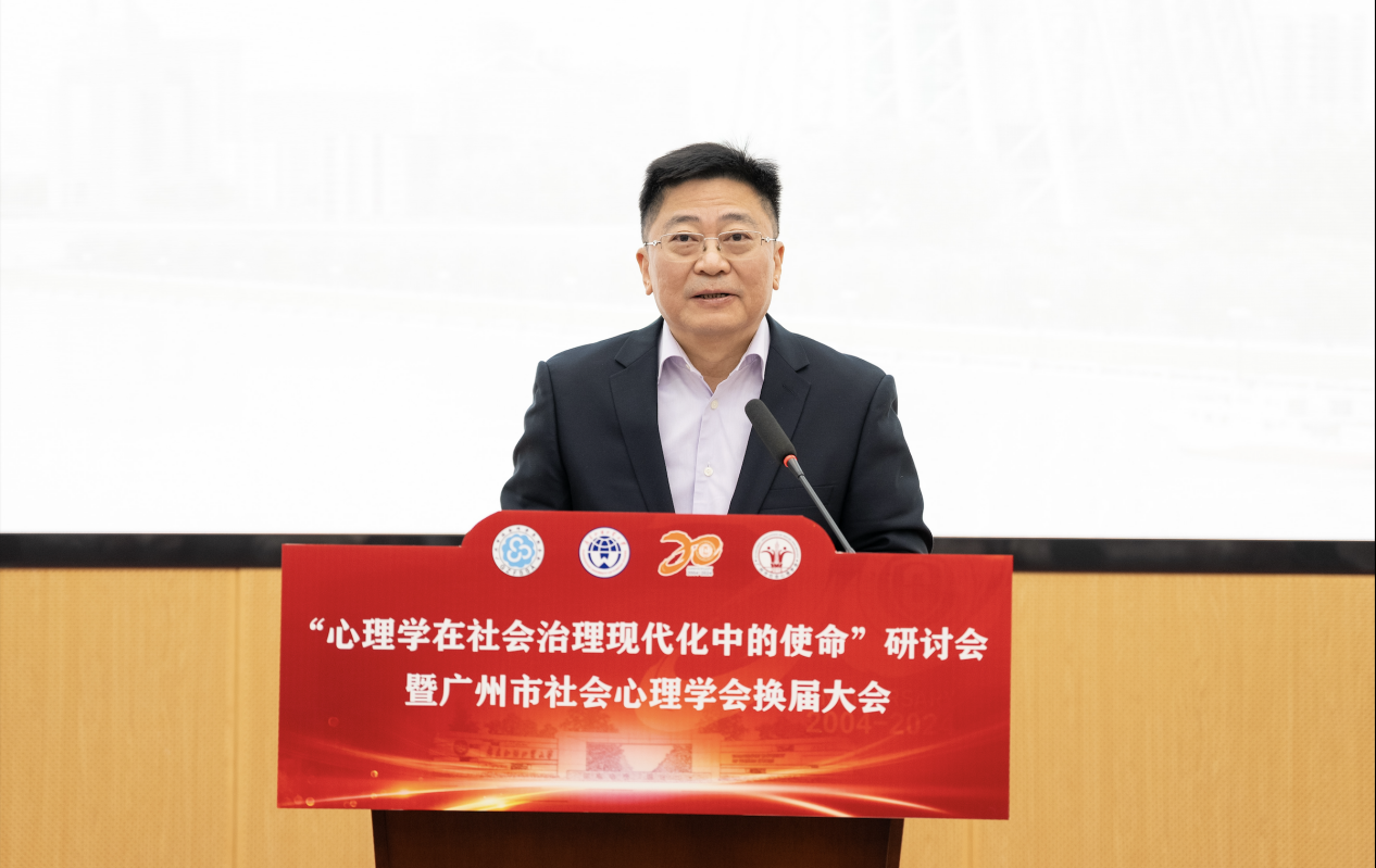 广州市社会科学界联合会党组书记、主席崔颂东在致辞中表示,此次会议共同探讨心理健康服务在社会治理现代化的角色和定位,探索心理学在精神文明建设中的作用和地位,探究心理学在中国式现代化中的职责和使命,正当其时,意义重大,充分彰显了市社科联和各级各类社科组织、学会主动服务服从于国家经济社会建设大局的职责担当。同时,他对承办方广州市社会心理学会过往的成绩表示肯定,期望在未来能够再创辉煌。