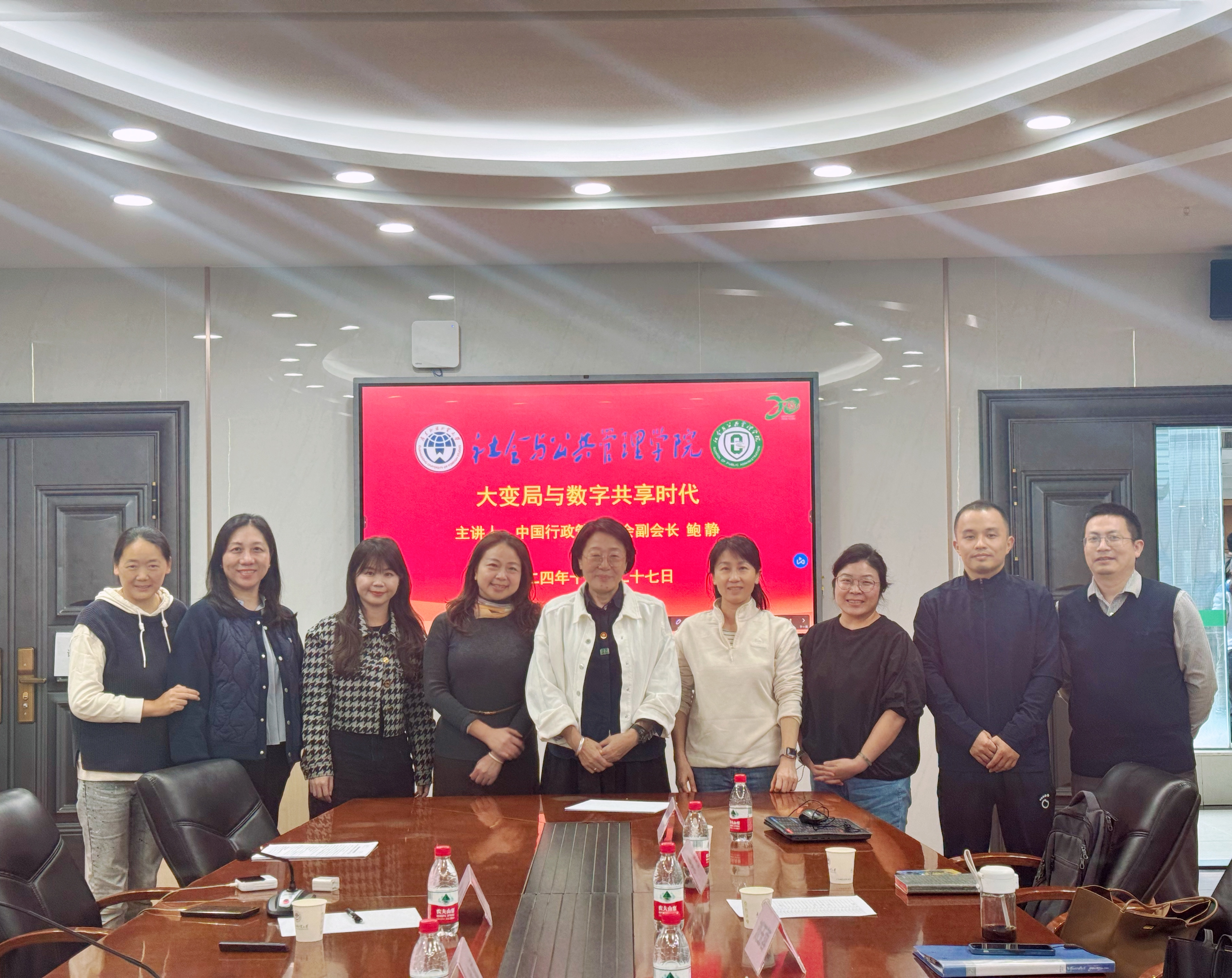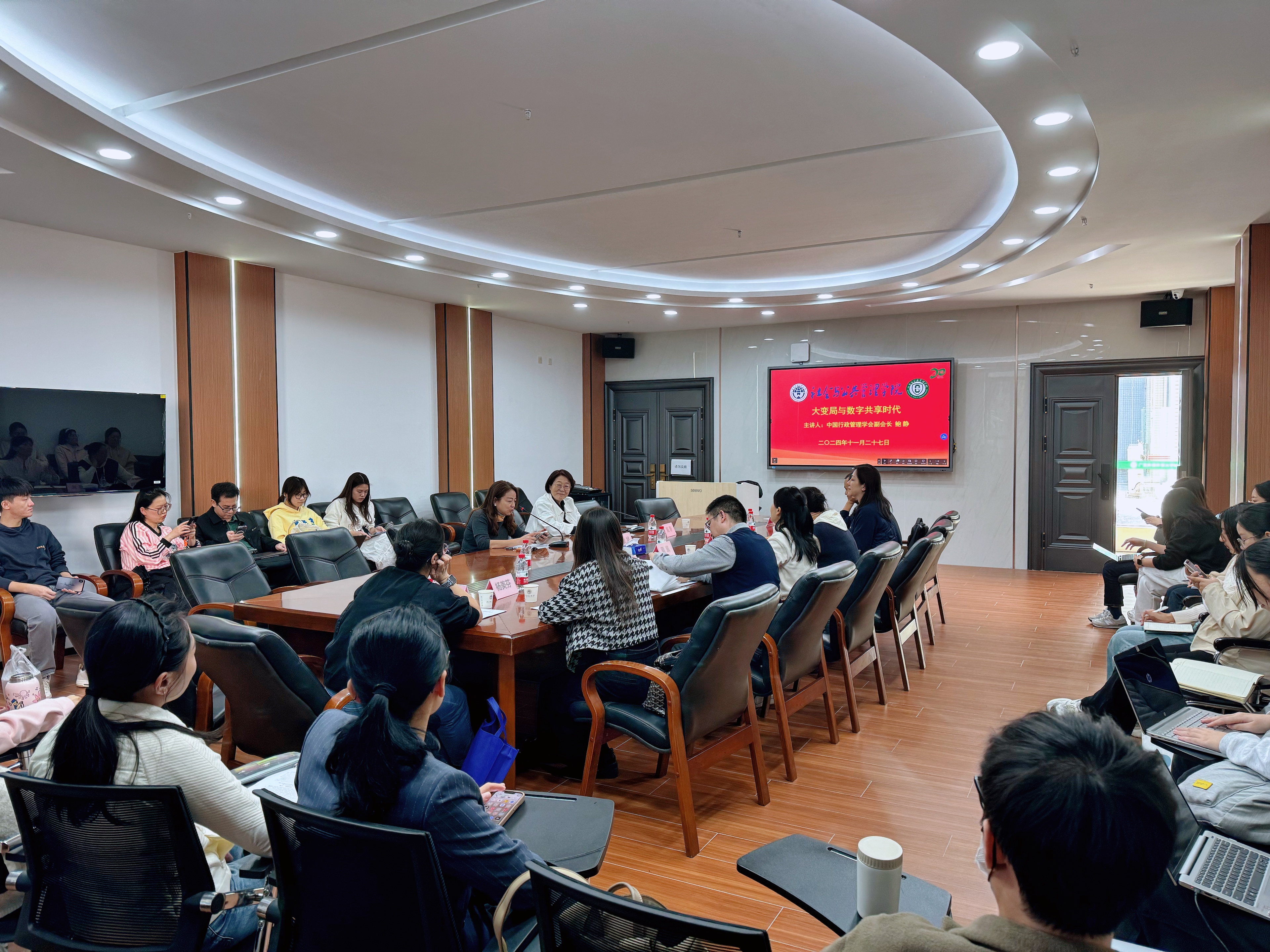 2024年11月27日下午,英国正版365官方网站特邀中国行政管理学会第八届理事会副会长鲍静研究员在MPA中心第二会议室开展主题为“大变局与数字共享时代”的学术讲座。英国正版365官方网站院长涂斌、副院长费久浩、行政管理系主任杨美芬和部分师生参加了本次讲座。讲座由涂斌院长主持。