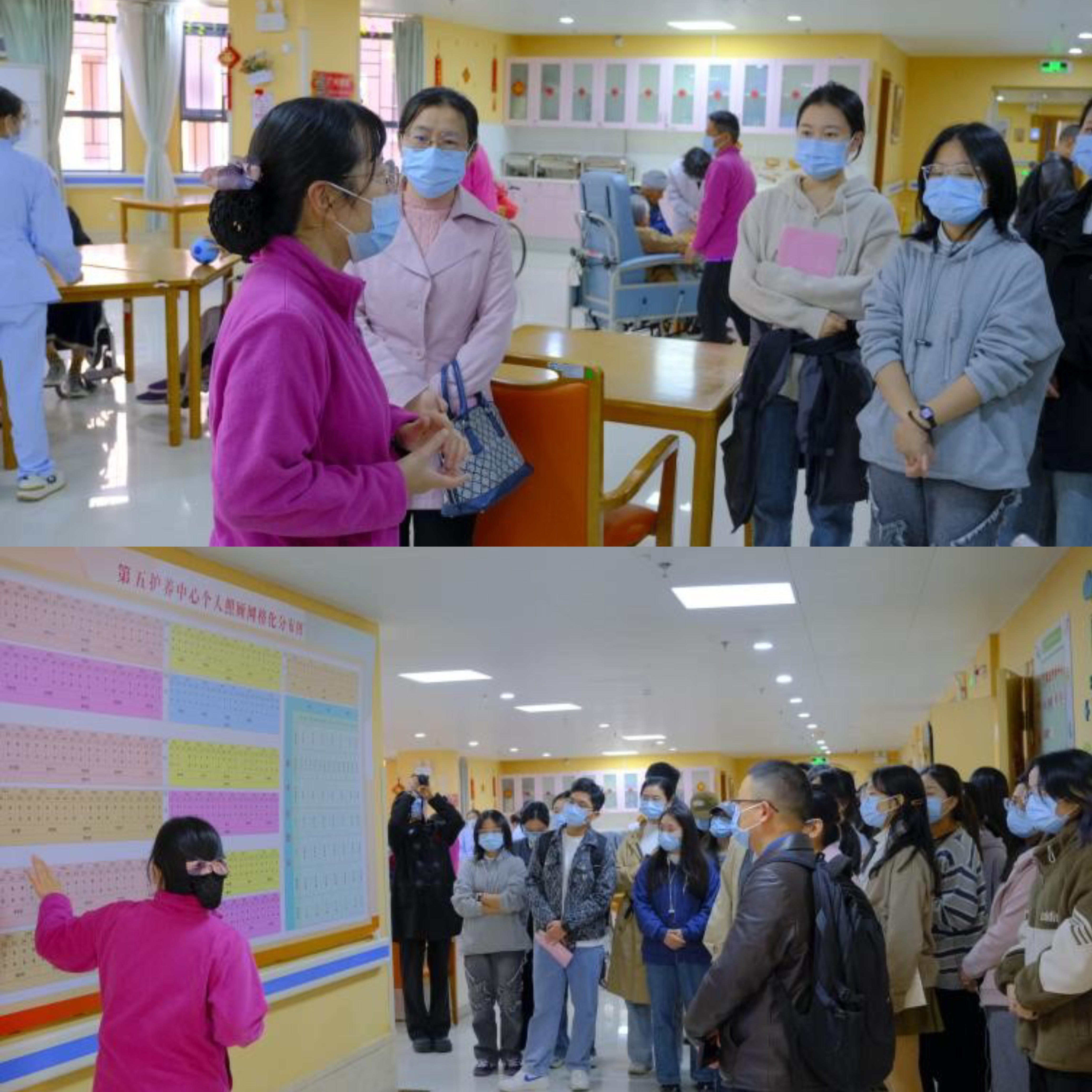 活动伊始,广州市老人院常广财院长、社工部梁娟娟部长、陈雪副部长、李嘉琦主任热情地迎接了师生们,并介绍了老人院的基本情况。师生们随后了解了老人院认知症照护服务体系和护养中心的网格化管理,并接触了先进的睡眠监测设备和大数据系统,这些先进的服务与管理手段让学生们受益匪浅。
