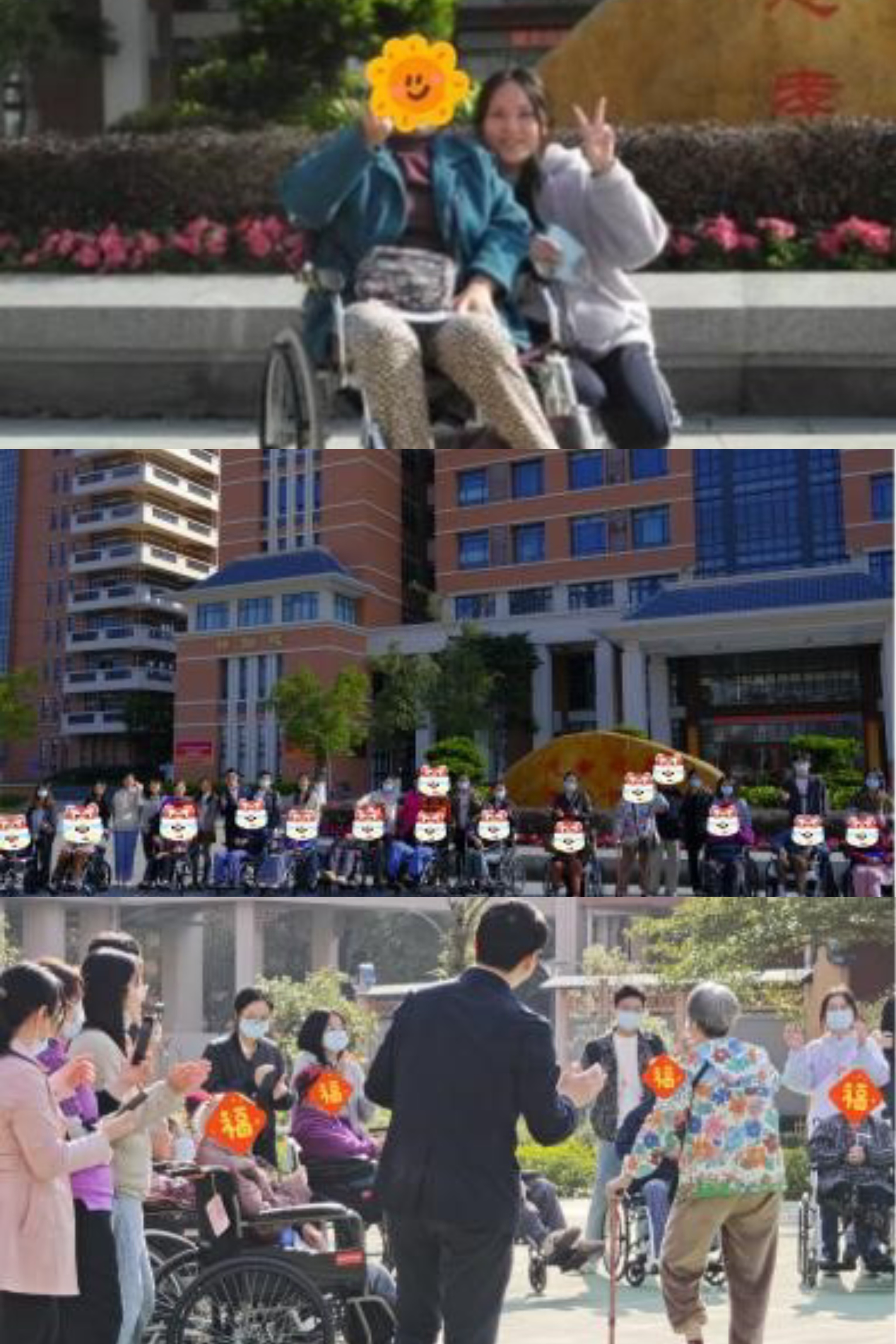 在轮椅培训环节,老人院护理组长指导学生们学习如何正确使用轮椅,之后学生们与行动不便的老人一一结伴出行,推着轮椅绕院一圈,进行了集体游园活动。在与老人的深入接触中,学生们不仅和老人抓拍了精彩的照片,还与老人亲切地交流,了解了他们的生活和感受。这种亲密的互动让老人们感受到了温暖和关怀,也让学生们更加深刻地理解了社会工作的意义。