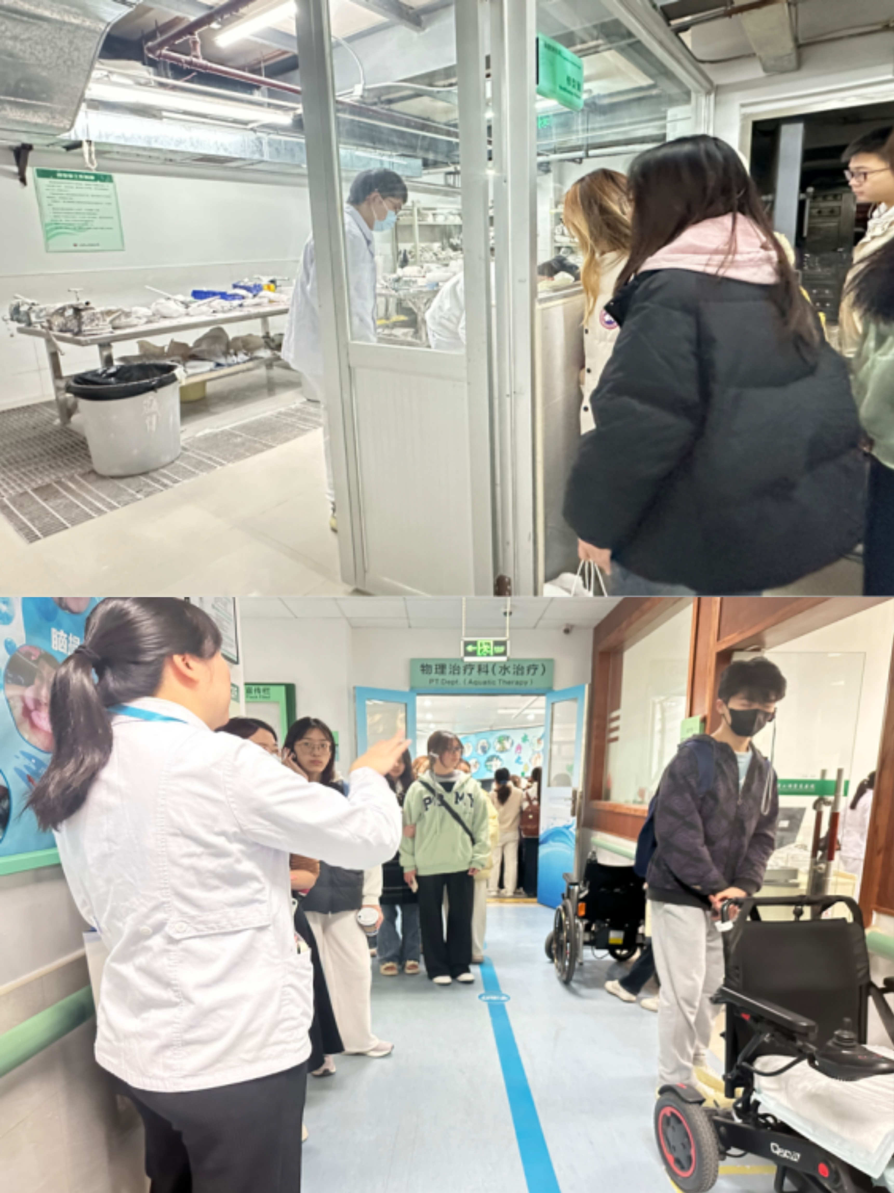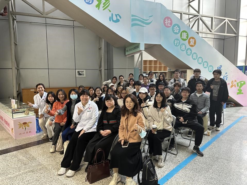 上午9:00,在医院高级社会工作师刘川及医务社工李会的引领下,学生们开启参观之旅。医院丰富多元的康复服务令人目不暇接,心理治疗、行为治疗、手治疗、运动康复、水疗等一应俱全,各类康复辅助工具也展示着现代康复医学的科技力量。为助力病人更好地回归社会,医院精心组织集体活动,搭建与企业沟通的桥梁,为病人重返工作岗位铺就道路。