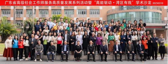 本网讯 3月10日,广东省高级社会工作师服务高质量发展系列活动暨“高能驱动·湾区有我”学术沙龙在我校白云山校区举行。会议由中共广东省委社会工作部主办,广东外语外贸大学和广东省社会工作师联合会承办,广东广播电视台民生频道协办。来自省内外高校专家学者、省内高级社会工作师代表、学生共计120余人参加会议。