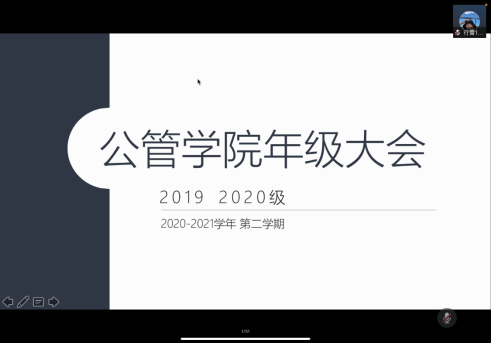 随后,19、20级辅导员白志华老师对本学期的学生工作进行了回顾,他指出在这一学期中,学院建设取得了许多令人欣喜的成果,如行政管理专业荣获国家级一流本科专业,学生活动方面,党史知识竞赛和党史故事会的成功开展,在学风建设上考研捷报频传。同时白老师也强调目前仍然面临着一些挑战,如在当前疫情反弹的情况下,其对于学习和生活节奏的扰乱,希望同学们能够找到合适的方法解决。他还表达了在即将到来的暑假中对同学们的一些期望,如鼓励同学们积极投身社会实践与乡村振兴,在社会调研中了解乡土民情,利用乡村中丰富的红色资源来开展党史教育,以实际的行动来迎接和庆祝中国共产党成立一百周年。并传达了有关接种疫苗的相关通知。
