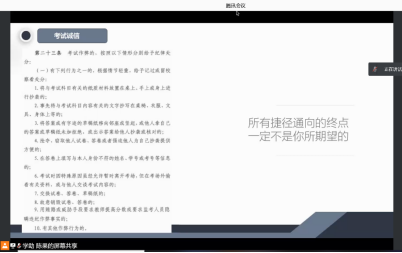 大会伊始,级委余乐、陈子豪为同学们着重讲解了考试诚信与防疫安全两部分内容。在考试诚信方面,级委余乐同学重点讲解了本科生手册中关于考试违纪部分的内容,强调了诚信考试的重要性和必要性,希望同学们能够诚信考试,不要轻易逾越雷池。