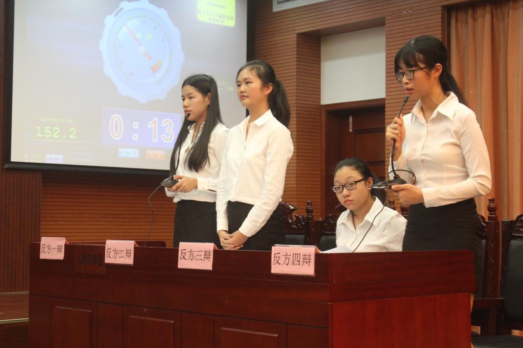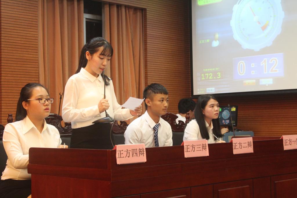 第一轮,双方分别进行开篇立论,两队一辩完成了本方理论的陈述。接着是质询环节,各队二辩向对方提出围绕一辩论点的连环问题并要求对方回答,此环节中双方答辩激烈,现场气氛十分活跃,这个环节也是最能够体现辩手们临场反应能力。在对答中,辩手们即使遇到了棘手的问题,也通过一定时间的思考将答案尽可能回答出来,体现了对辩论赛的尊重;随后是自由辩论环节,双方交替发言,将整个辩论赛推向高潮。队伍里四个辩手相互配合,团结协作,将团队精神展露无遗;最后一轮是各队进行总结陈词,由双方四辩完成。