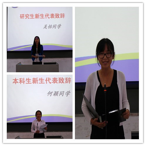 接着是团委副书记王雯雯代表老生发言,她回忆过去一年来在政管的学习生活,总结经验,希望新生能够尽快融入大学生活,确立目标。研究生代表吴怡也表示对接下来学习和生活的期待。最后新生代表何颖上台发言时,充满了对大学生活的向往,同时也表达了领导、老师、师兄师姐的感谢。