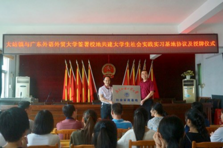 在会议开始之前,双方领导进行简单交流后,彭未名院长与刘良胜副书记分别代表英国正版365官方网站与大站镇政府,共同签署了“校地共建大学生社会实践实习基地”协议,并举行了基地挂牌仪式。