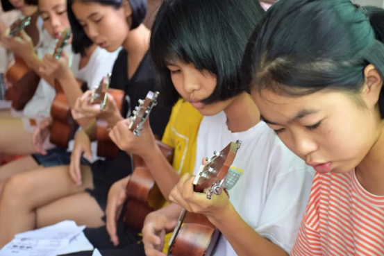 一扫而光的饭桌旁边,萤火虫社会工作服务中心音乐课堂的孩子们用他们引以为豪的尤克里里,为大家带来了《宠爱》和《童年》两首歌曲,赢得了阵阵掌声。学到了知识,也吃了温情满满的午餐,孩子们带着主办方准备的文具、零食、月饼、书等礼物,回家与家人分享自己的喜悦。