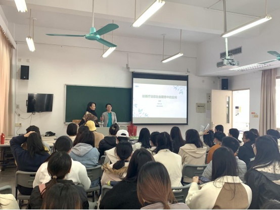 课程伊始,徐娟老师对在场同学进行了提问:“社会服务是做什么的?”同学们积极回应徐娟老师,大方分享了自己的想法和答案。徐娟老师详细地讲解了社会服务的概念,并且还向同学们拓展了宏观社会服务以及微观社会服务的含义和区别。