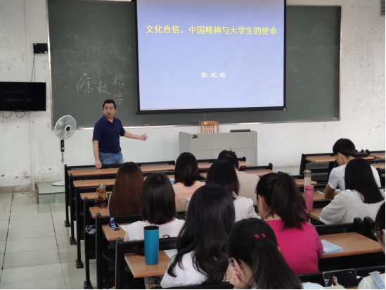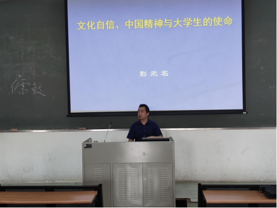 彭未名通过中华文明对世界文化的贡献,引出了文化自信的话题。中国文化源远流长,是世界文明的发源地之一,因此,我们有文化自信的底蕴。接着他从“坚定文化自信”“讲好中国故事”“弘扬中国精神”“担当文化使命”等四个方面阐述了文化自信对于国家、民族的重要性和大学生应有的作为。同时,他对比了东西文化的差异,列举了文化自信而至国家兴盛、文化不自信而至国家衰亡的例子;指出在近代,由于列强的欺压和侵略,导致很多国人对自己文化的不自信,这是错误的。文化是一个国家、一个民族的灵魂。文化兴国运兴,文化强民族强。如果在对外交流中,缺乏文化自信,我们就会失去对自己文化的认同,失去本民族文化特性、习俗以及对自己生活方式的肯定,从而失去自我,也不能与其他文化对等地交流。“没有高度的文化自信,没有文化的繁荣兴盛,就没有中华民族伟大复兴。”