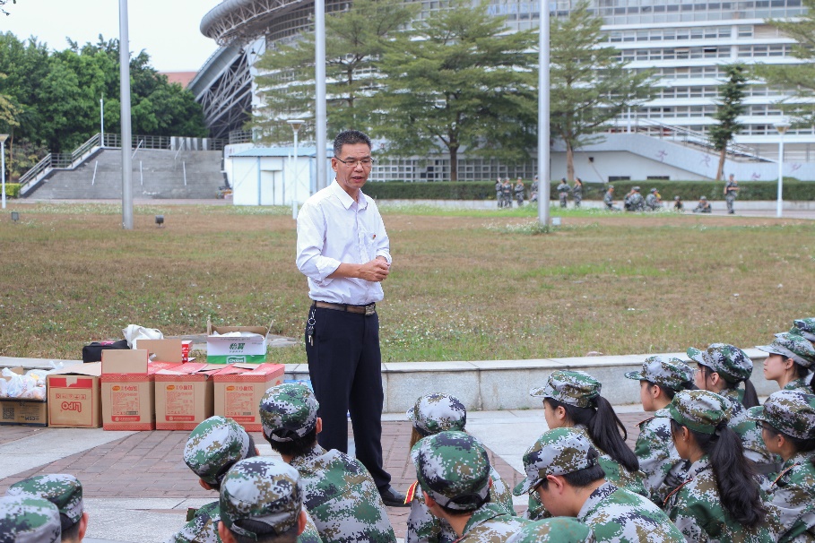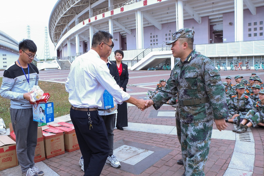 随后学院领导向全体参训教官与学生以及跟训朋辈导师发放慰问品,大家有序地进行慰问品的领取,并表达了对学院领导老师们关心的感谢。冬日的暖阳照在同学们身上,学院的慰问温暖了同学们的心头,让同学们感受到了学院对大家军训的重视与支持,给予同学们刻苦训练的动力。