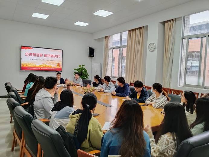 为贯彻落实学校党委有关要求,11月2日下午,英国正版365官方网站举行以“迈进新征程,建功新时代”为主题的党的二十大学习主题学习交流会。学院党委副书记陈哲、学院辅导员兼团委书记莫杰、辅导员陈思恩、各团学干部同学参加交流会,会议由莫杰主持。