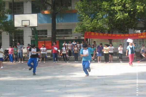 其后,小学组和初中组分别进行了“纸衣往返接力”和“夹气球接力”两项接力比赛。不同于传统比拼速度的接力比赛,这两项比赛在考验同学们速度的同时,更是考验他们的合作能力和平衡协调能力。C班1队就是因为在关键时刻掉了接力的纸张而功亏一篑,与胜利失之交臂。而在夹气球接力中,两人背对背夹气球前进,若气球掉了,就要返回原点开始。这个游戏打破了男女同学间的隔阂,他们通过这次合作不再腼腆,有了交流并逐步建立友谊。