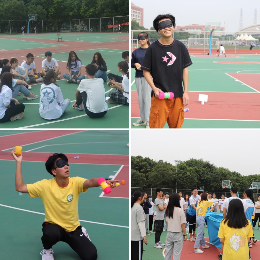 上午八点三十分,素质拓展活动在南校区篮球场展开。团委学生会各部门成员被分为白、黄、黑、灰四组,各团队成员合作完成5项游戏:猜猜我是谁、芬兰撞柱、田间一条龙、沙场点兵与翻滚吧,篮球or少年。
