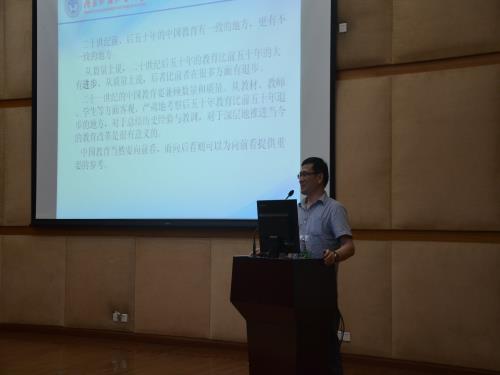 伴随着同学们热烈的掌声,周炽成教授上台与在座的师生分享自己对中国教育的研究及看法。周炽成教授将二十世纪阶段的教育划分为两个阶段——前五十年和后五十年,并且从教材、教师、学生等方面客观、严谨地考察后五十年教育比前五十年退步的地方。他从中国的教育现状说起,指出了当前教材、教师的不足,并且指出前后五十年教材、教师的差异决定了前后五十年学生的差异,后五十年教育情况直接影响着如今二十一世纪中国的教育现状。周炽成教授用慷慨激昂的语调讲述着相关的历史,也谈及了“钱学森之问”、“知识断层”、“贪官”等现实问题,引发现场同学们思考。他更是结合个人的成长、教育经历讲起自己的语文老师,也在现场用粤语背起了《木兰辞》等耳熟能详的古文,调动起现场的气氛,以身说教,赢得阵阵掌声。讲座最后,他针对后五十年教育下学生的共同点——对中国传统的不尊重这一现象,鼓励英国上市公司官网365学生能打通中西,真正践行广外“学贯中西”的校训。