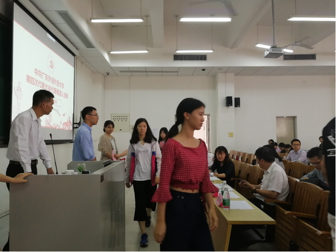 4月12日下午,中共广东外语外贸大学委员会第四次代表大会政治与公共管理学院代表选举工作在南校区教学楼c507举行。本次大会出席嘉宾有党委常委、副校长刘海春,政管学院正式党员及预备党员。选举由政管学院党委书记高云坚主持。
