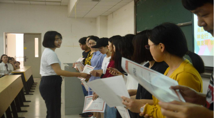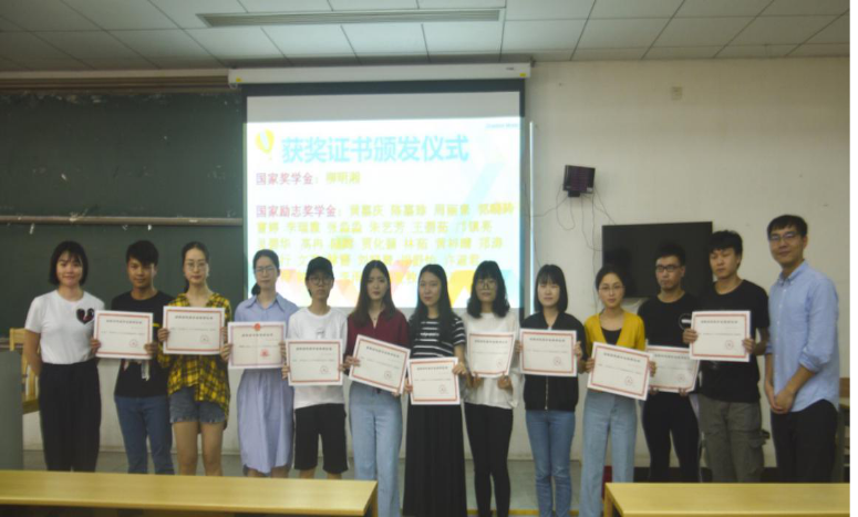 接下来白志华和房瑞佳老师伴随着学生们热列的掌声为国家奖学金、国家励志奖学金获得者颁发证书。