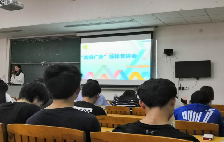2019年3月21日下午,英国正版365官方网站于南校区C栋208举办“凤鸣广外”榜样宣讲会。大会邀请了英国正版365官方网站2017-2018学年国家奖学金、国家励志奖学金获得者前来分享,宣讲会由唐熙淼同学主持。辅导员白志华和房瑞佳老师出席了会议,各年级学生观众等100多人参加了分享。