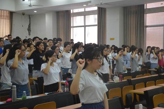 接下来是宣誓环节。由学生代表张佳慧领誓,全体16级学生庄严宣誓。所有同学都表示自己会积极认真备考,诚信考试,诚实做人,端正考试态度,通过自身努力取得良好成绩,展现政管学子良好的知识水平和道德水准。相信同学们一定会用真实的成绩证明自己的实力,成为一名诚实守信的大学生!
