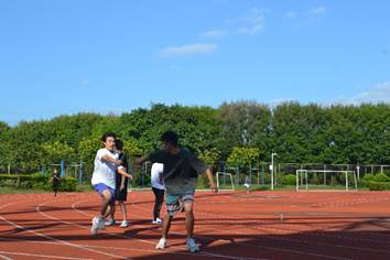 在运动员代表、裁判员代表宣誓后,院运会正式开始。此次院运会不仅设有正规的田径项目,还安排了足球运球绕障碍接力比赛、10人集体跳绳、拔河趣味比赛等三项趣味团体比赛。