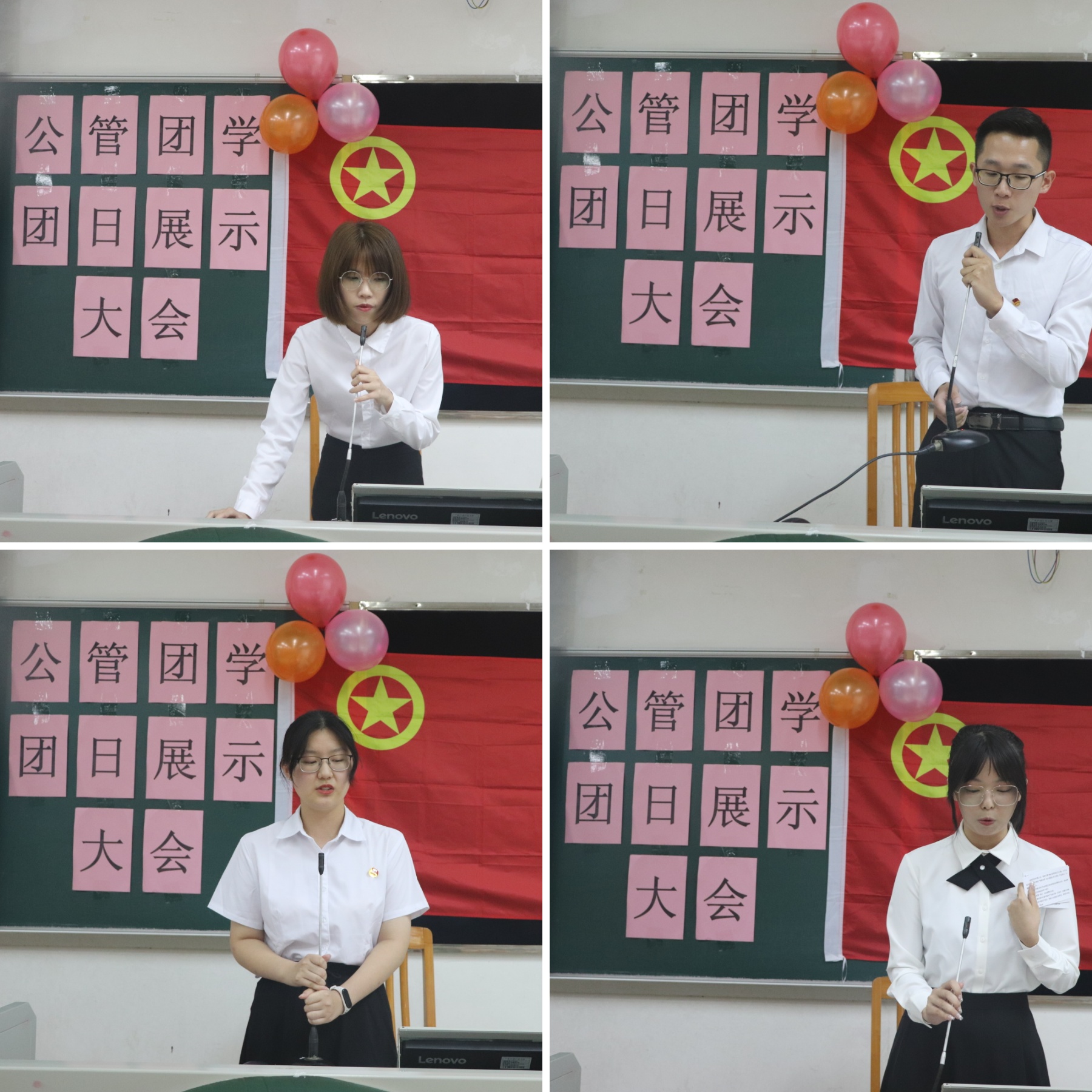 随后,各班团支部代表开始进行本班团日活动的展示。多个班级采用了视频的方式带领大家回顾本班开展的团日活动。心理专硕2001班带领同学们参观了辛亥革命纪念馆,进行了红色观影活动。行政管理2001班则主要沿着三条主线展开活动,采用线上+线下的模式,结合学科特色在班级内展开党史竞赛等趣味活动。应用心理2001班的团日活动多样,他们进行了红色影视片段配音,而且还在感受阿茶学姐支教的奉献精神后组织班级同学给山区的小朋友书写科技小故事,为提升山区同胞们的科学素养贡献出了自己的一份力量。社工2001班的团日活动同样是实践与班级思政教育活动的结合,他们进行了班级的党史故事分享会。社工1901班致力于打破学科边界,同时发挥本专业的精神内涵——助力人民,奉献社会,通过引入量化评比的方式提高本班团日活动的参与度。行管1902班以自编自演话剧的将学校举办的征文比赛引入到团日活动中来,独具新意。行管1901班的团日活动则融入特色线上朗诵,加强了对同学们爱国主义精神的培养,他们在宣传工作上采用了在多个平台发布视频以及发布微信公众号推送的形式。