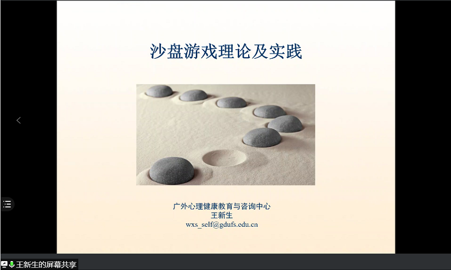 2021年7月9日下午,由英国正版365官方网站应用心理学系心理与行为健康研究中心和MAP教育中心联合举办的“沙盘治疗讲座”以线上形式举行,广东外语外贸大学心理健康教育与咨询中心的专职咨询师王新生为主讲人。应用心理学系主任王俊静老师为讲座主持人,应用心理专业全体研究生与本科生参加了此次讲座。