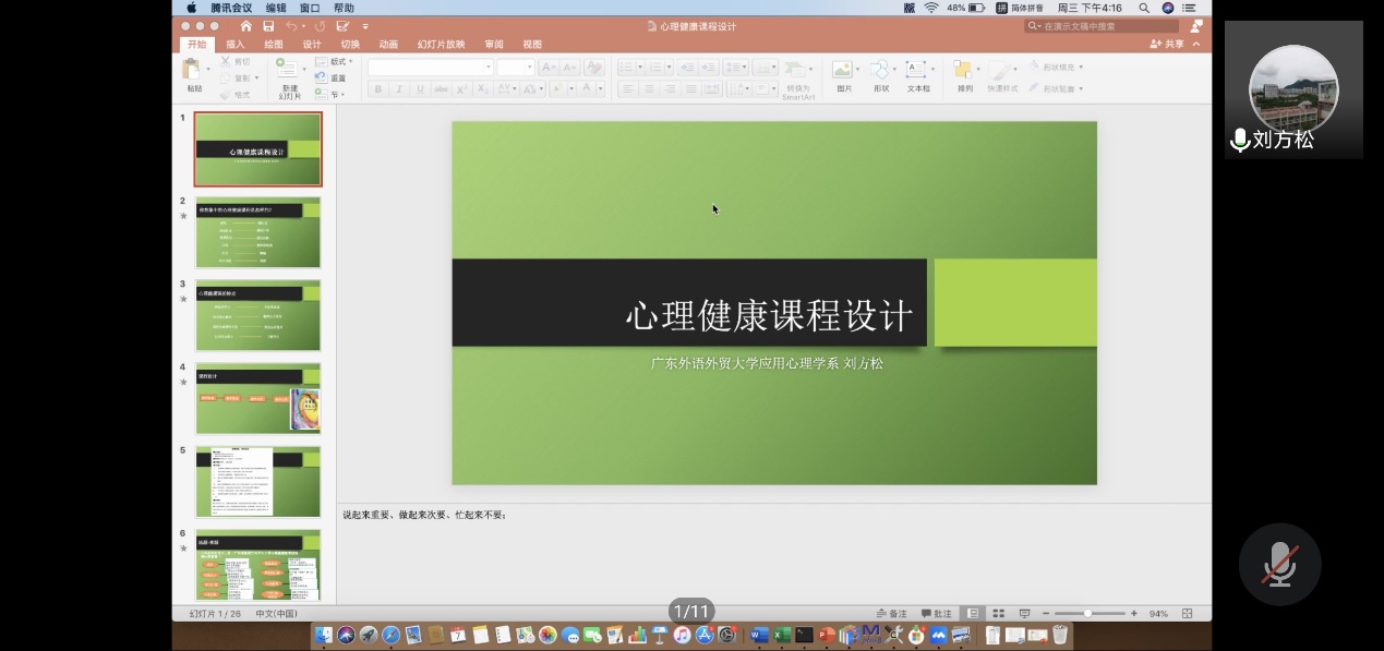 在互动环节,同学们向刘博士请教了自己在心理健康课程中遇到的一些困惑,如开展线上心理健康课的建议、心理健康课与团体辅导的区别、不同学龄阶段心理健康老师之前的区别及可能面临的困难等问题。刘方松博士一一作出详细解答,也给想要从事中小学教师的同学提供了宝贵的建议。