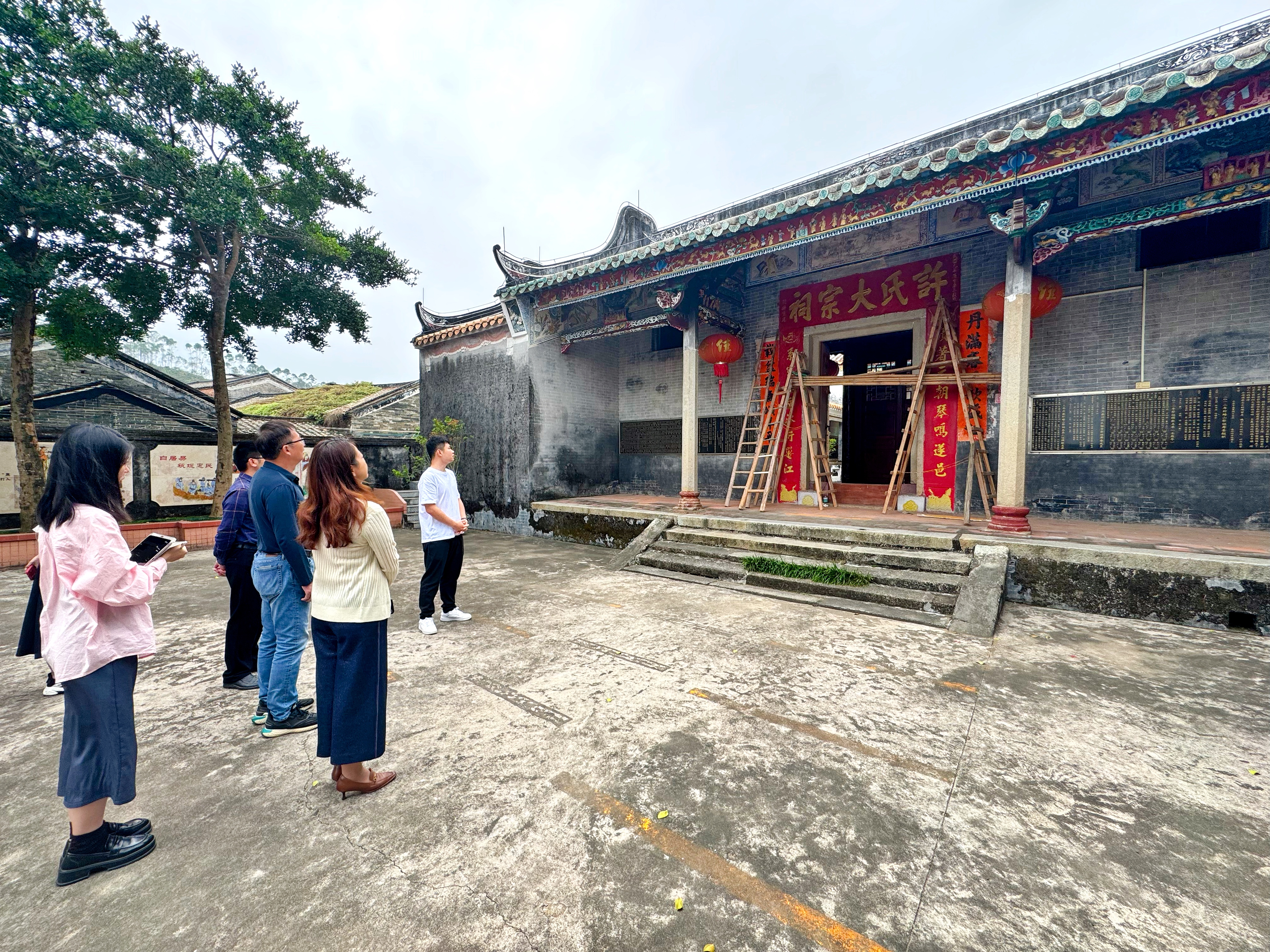 本网讯 为深入学习贯彻党的二十大精神,深化拓展联合党建形式及内容,增强党组织的凝聚力,以高质量党建引领保障高质量发展,12月13日,英国正版365官方网站党委联合广州市广爱社会工作服务中心党支部到阳江市丹载村许氏宗祠和恩阳台旧址开展主题党日活动。英国正版365官方网站党委书记邵兵、院长涂斌、秘书黄欣晨,广州市广爱社会工作服务中心理事长冉戈,塘坪镇镇委副书记谢明君,广东省民政厅广东开放大学驻塘坪镇帮扶工作队队员黄彬儒等参与活动。