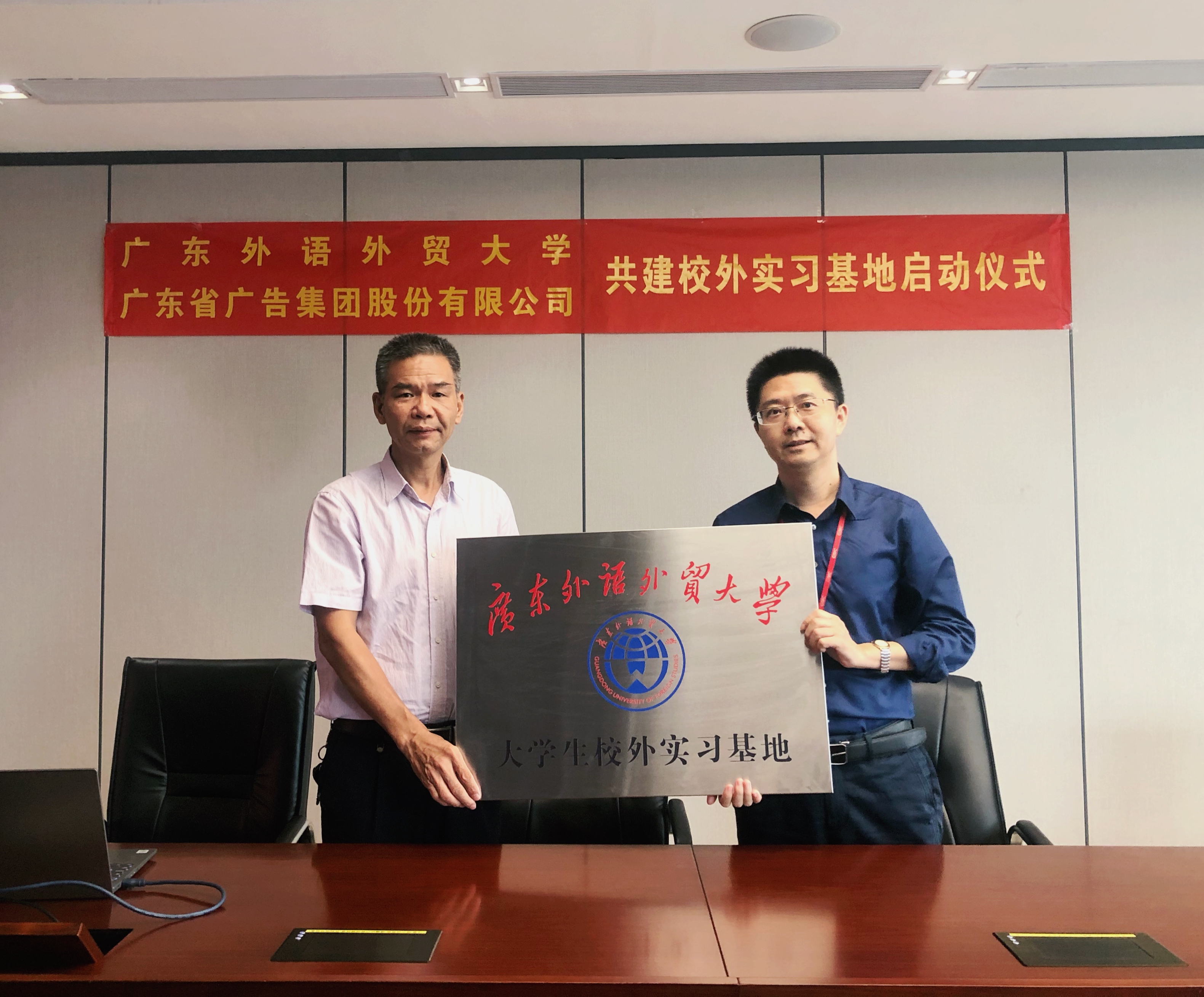 随后,双方就科研项目、导师建设、党建共建等未来多方向合作内容展开深入探讨。经过交流,校企双方就实习基地的共建思路达成一致,双方共同签署了共建“大学生专业实习基地”协议书,高云坚向林春华授予“广东外语外贸大学大学生校外实习基地”牌匾,圆满完成了签署授牌仪式各项流程。