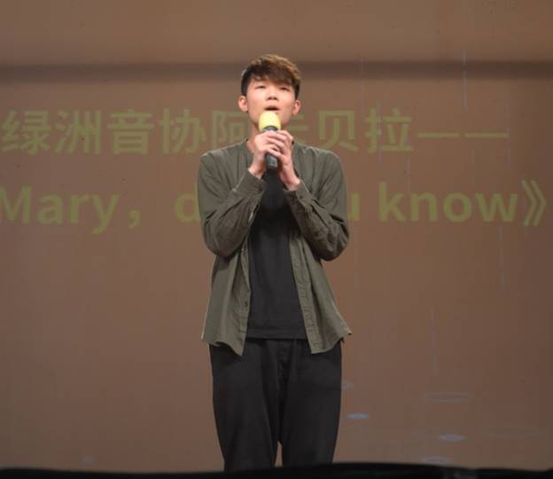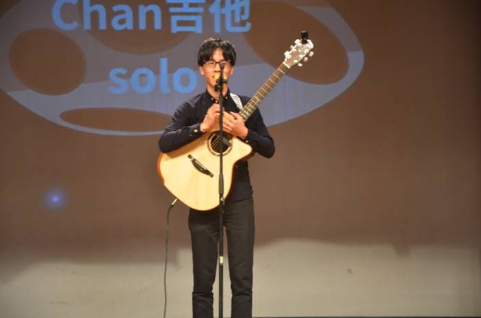 广东工业大学Weekend Chan的吉他指弹表演,奇妙的音符带动着全场观众的情绪;