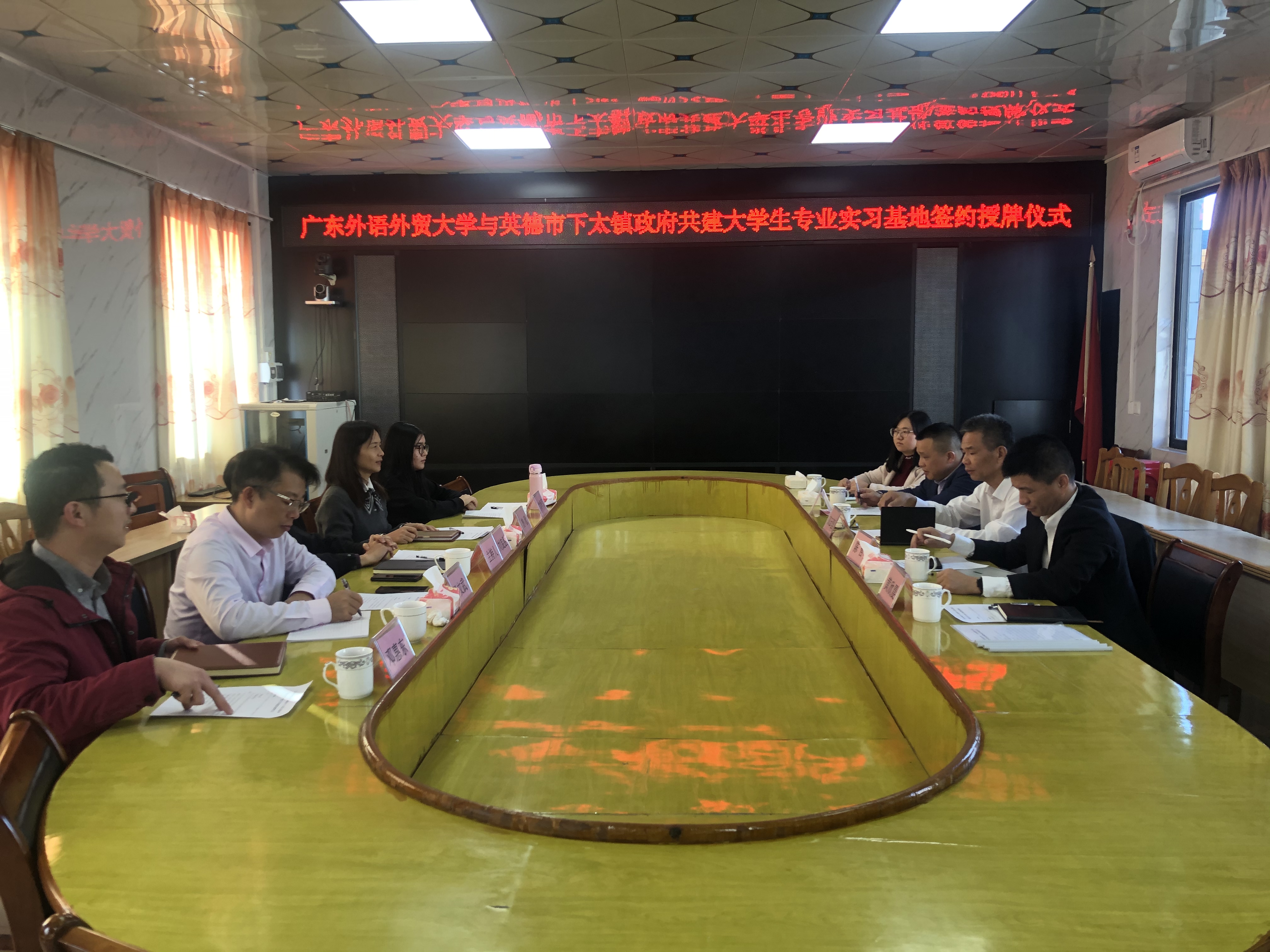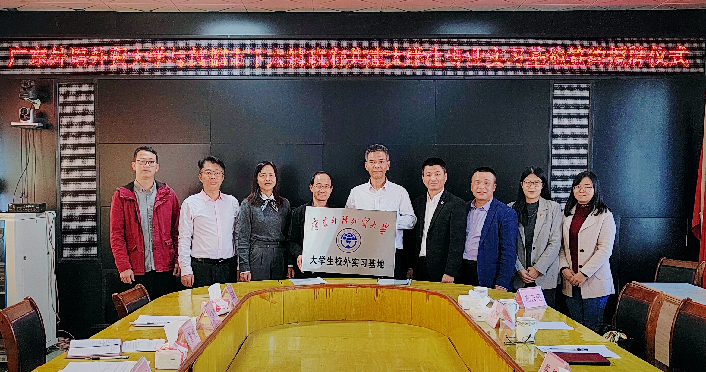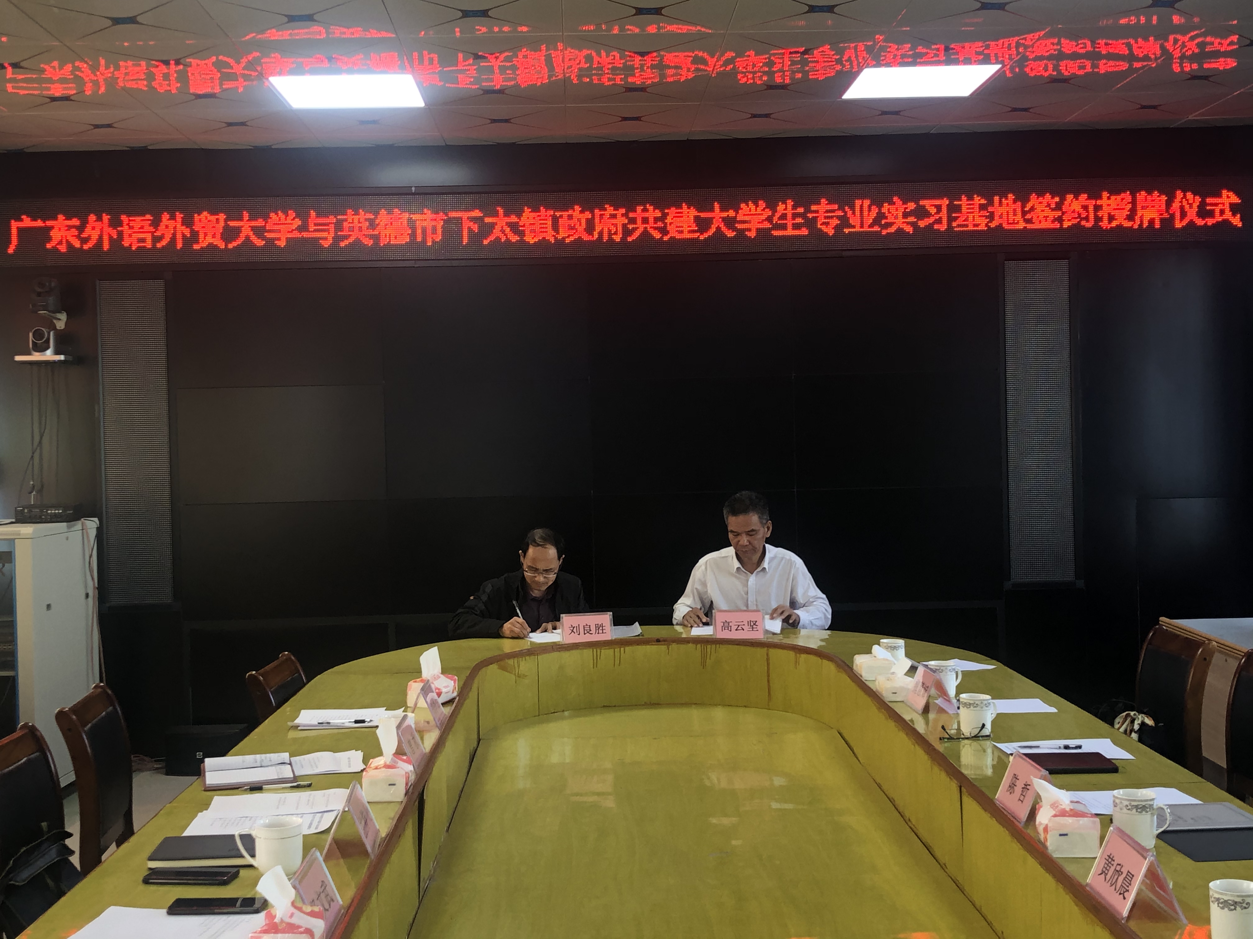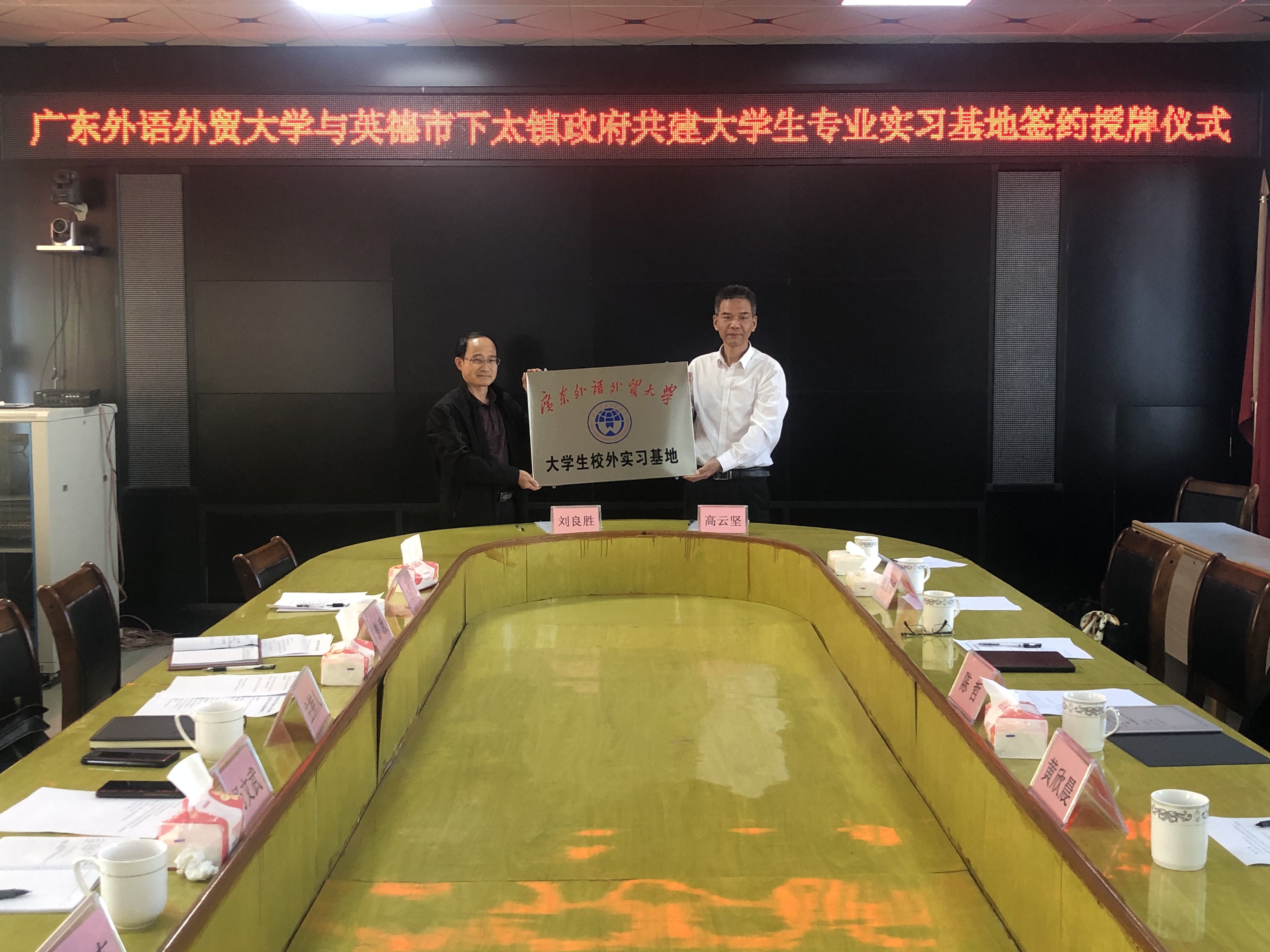 座谈会后,学院党委书记高云坚与下太镇人大主席刘良胜共同签署了共建“大学生专业实习基地”协议书。高云坚向刘良胜授予“广东外语外贸大学大学生校外实习基地”牌匾,圆满完成了共建大学生专业实习基地座谈会暨签署协议和授牌仪式各项流程。