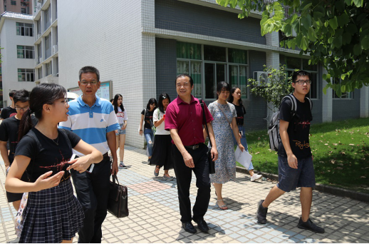 彭未名院长为同学们发放慰问品后,带队前往英红中心小学进行实地考察,对同学们的三下乡工作表示赞赏。