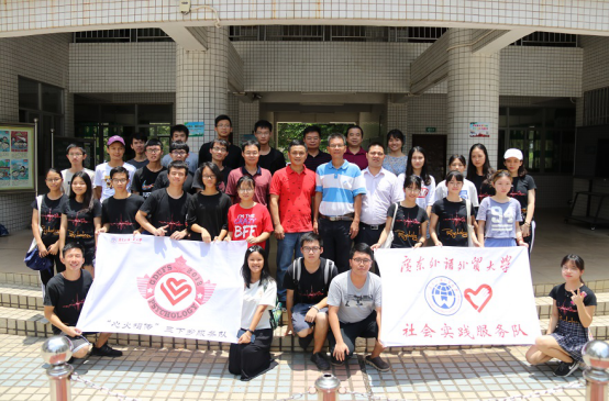 本网讯 7月23日上午,广东外语外贸大学英国正版365官方网站党委书记高云坚、院长彭未名、团委书记房瑞佳与英德市教育局副局长梁振列、英德市英红镇党委副书记白雪琦于英红政府正式会晤,并举行三下乡英德英红服务队工作座谈会暨基地签约挂牌仪式。会后领导们来到英红镇中心小学慰问心火相传服务队队员。
