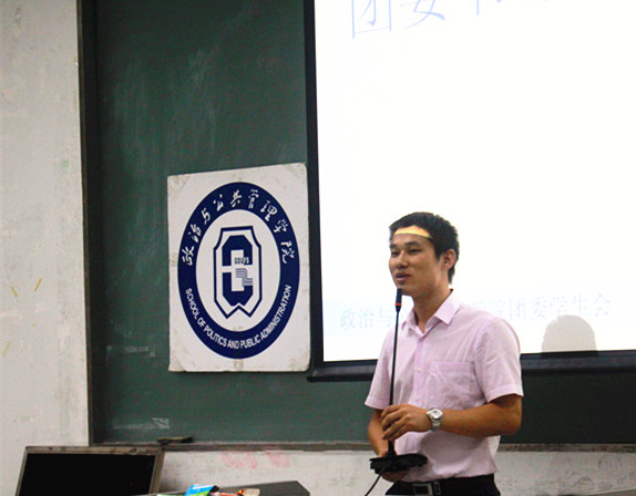随后是团委副书记王雯雯对团学工作进行总结,她既肯定了团学架构的调整提高了部门的运作效率,各部门能够各司其职,又坦率指出目前的架构仍然存在缺陷需要改进,各部门之间的沟通有待加强。最后,表达了自己对政管团学干事的期望:1、做到自信、大方、诚实。2.具有远见卓识的能力。3.学会换位思考,做到兼容并包。4.富有责任心,勇于承担责任。