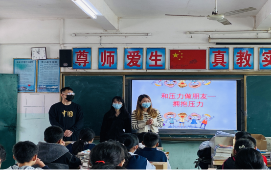 孩子们回到教室后,志愿者根据之前收集的心愿卡片,将心愿礼物发到孩子们手中。随后,英国正版365官方网站研究生支教团、广州画画儿、广州聚能应急救援队等志愿团队分别为横石水中学开展送课活动。英国上市公司官网365研究生赖淑婷、陈雯、黄颖琦、李晓霞以“种下一颗自信树”为主题,帮助同学们树立一颗自信心的种子,帮助学生培养自信心,建立正确的价值观;罗坤、朱文钧、薛晶晶、陈晓惠通过微电影展示,了解励志人物事迹,和学生一起探讨积极的人生态度;汤婉婷、周晓芬、林济瀚通过与学生互动,和同学们一起探讨压力是什么?了解同学们面对压力的表现,讲解面对压力的小技巧。