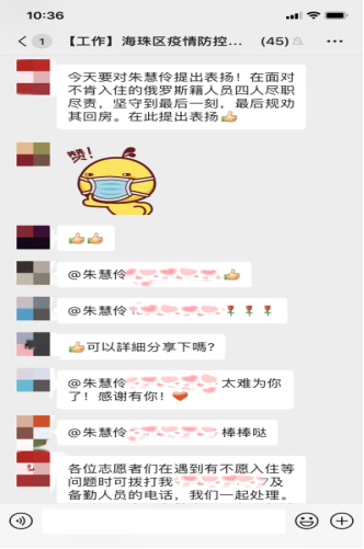 图为海珠区疫情防控翻译志愿者群聊内容截图