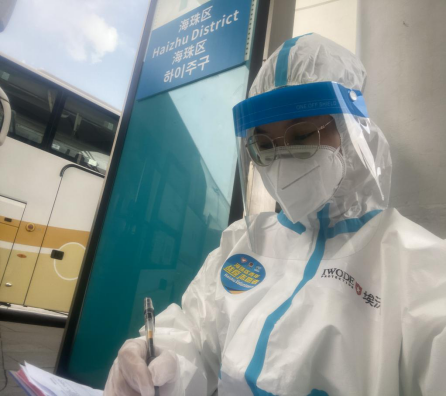 3月18日广州市海珠区青年志愿者发布疫情防控外语翻译志愿工作,看到招募公告,朱慧伶第一时间报名,其主要服务内容是当境外来穗人员到达机场及酒店后,外语翻译志愿者协助医护人员做好信息登记和翻译工作,安抚旅客情绪等。截至3月31日,朱慧伶共计服务60小时,服务约100人。“本科是英语专业,研究生阶段的研究方向是涉外社会工作,这次招募疫情防控翻译志愿者,与自己学习内容密切相关,可以充分发挥自己专业优势,而且自己一直很想为国家做些力所能及的事,疫情当前,作为中华儿女更是义不容辞,所以在看到招募通知之后,毫不犹豫地投身于疫情防控的志愿服务中。”朱慧伶如是谈到。
