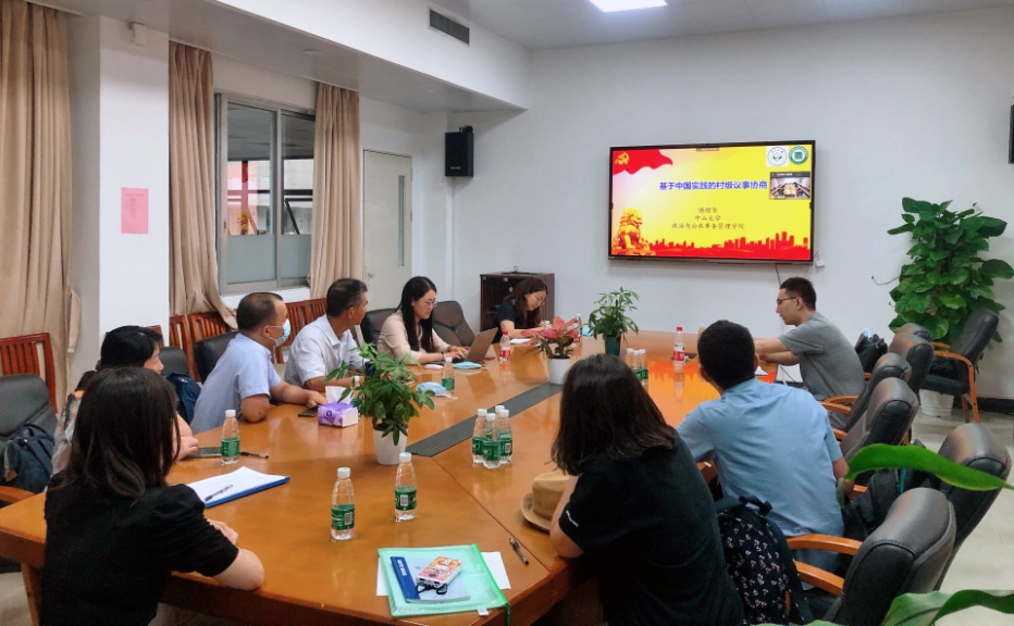 本网讯 2021年9月16日下午3:30,英国正版365官方网站于南校区教学楼D506会议室成功举办了以“基于中国实践的村级议事协商:分析框架与基本内涵”为主题的双周论坛。本次论坛特邀中山大学政治与公共事务管理学院傅熠华副研究员做主题讲座。英国正版365官方网站党委书记高云坚、副院长涂斌、广东社会组织管理学院副院长陈胜、行政管理系主任费久浩、部分公共管理大类及社会工作系老师出席论坛。根据疫情防控要求,本次论坛采取线上线下结合方式召开,教师在线下交流,论坛全程通过腾讯会议直播,相关专业的硕士研究生和本科生在线上实时参与。论坛由涂斌副院长主持。
